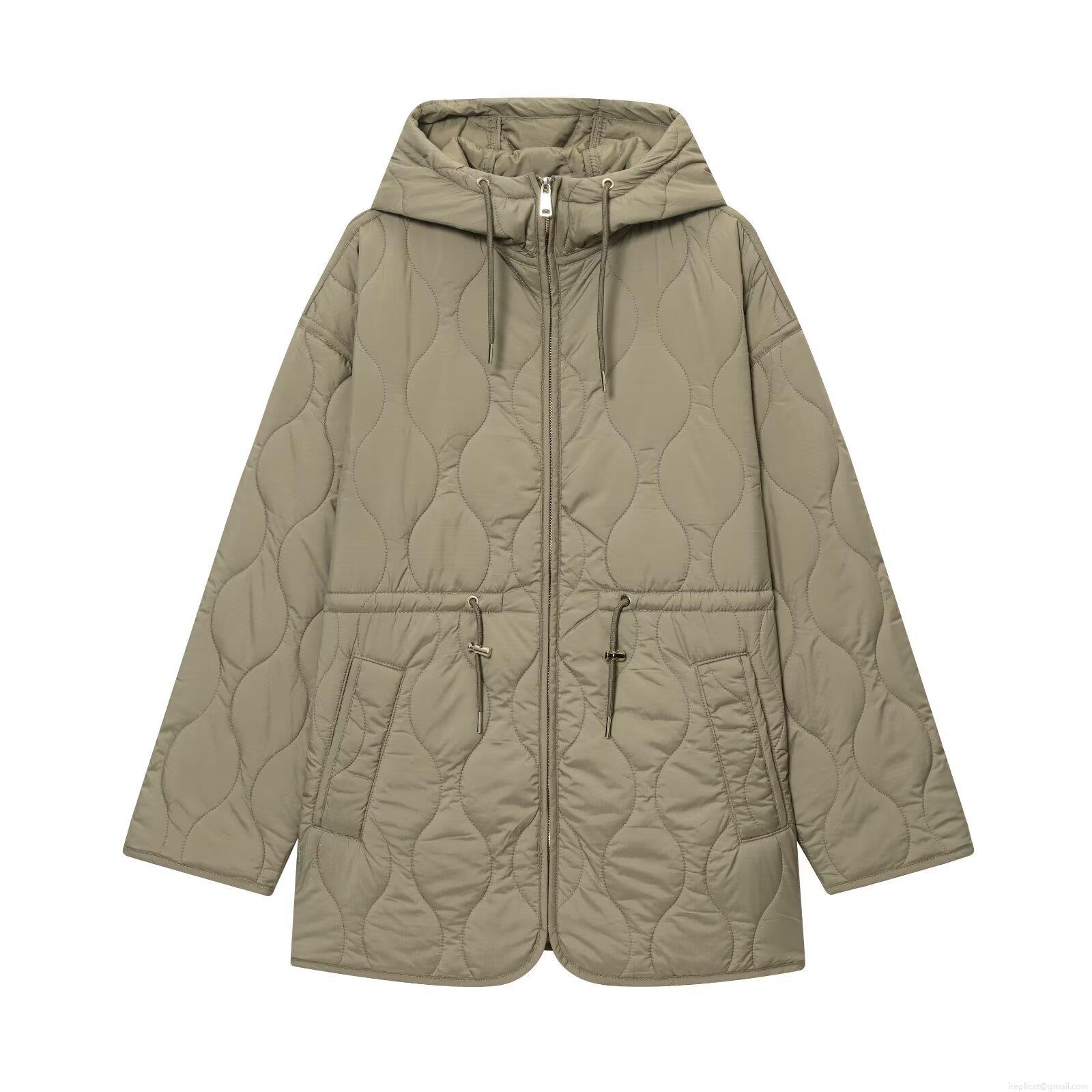 Solid Color, Quilting, Hood, Wavy Quilting, Waist Drawstring