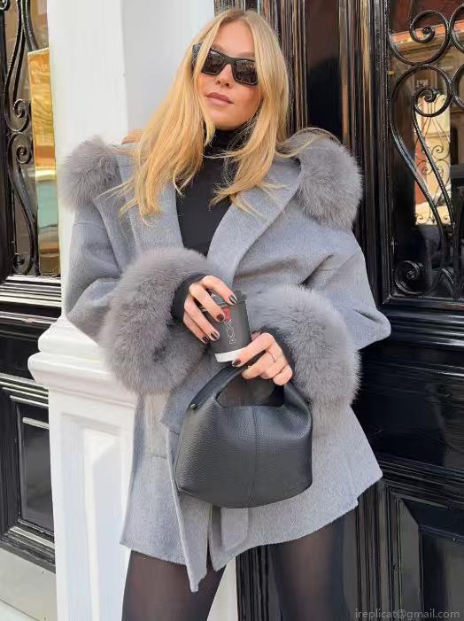 • Women's Hooded Woolen Coat With Faux Fur Collar Grey Mid-Length Belted Cape Jacket Elegant Winter Warm Outerwear Overcoat
