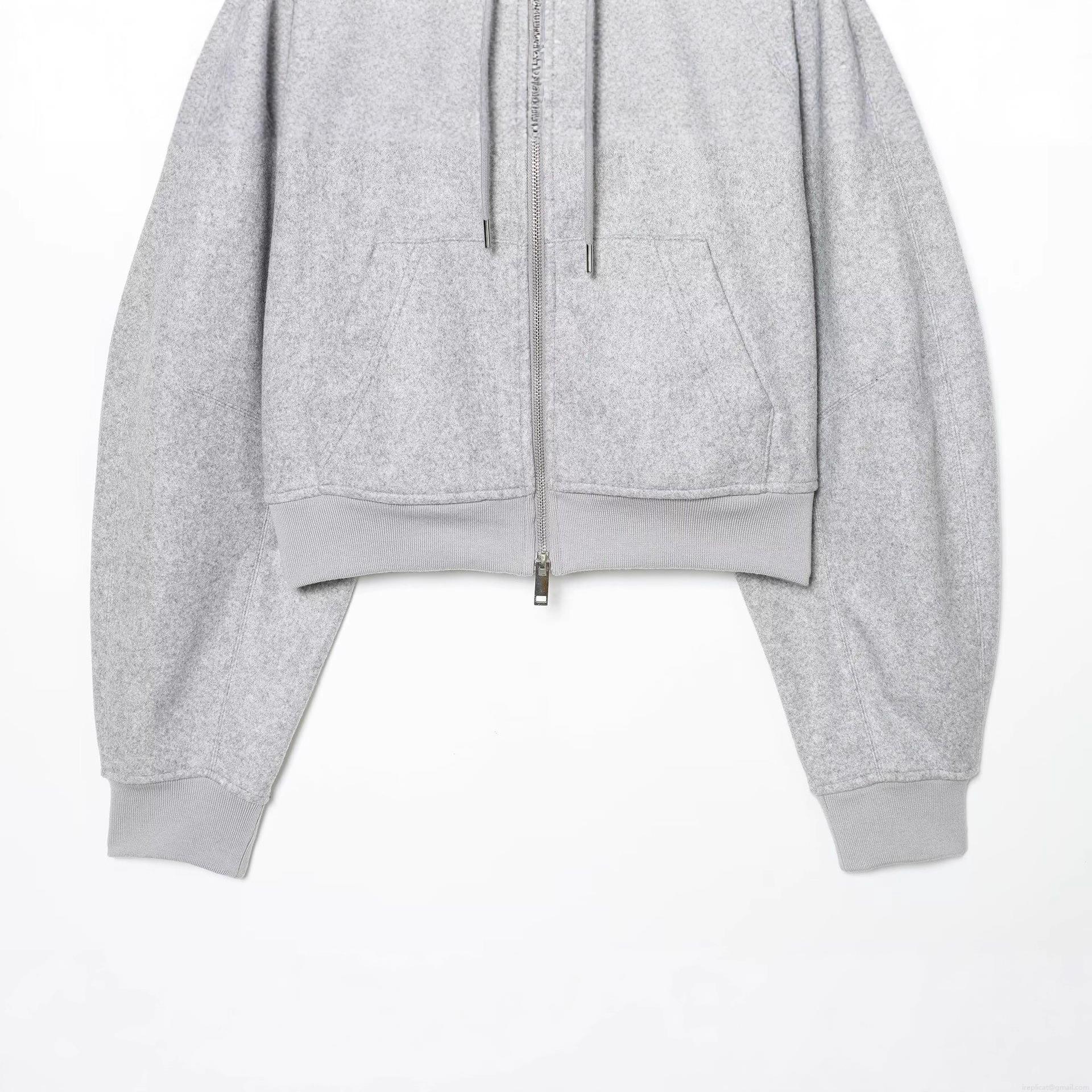 • Women's Hooded Zip-up Sweatshirt Jacket Heavyweight Polyester Silk Wool Blend Streetwear Long Sleeve Plain Grey Casual Outerwear For Autumn Winter