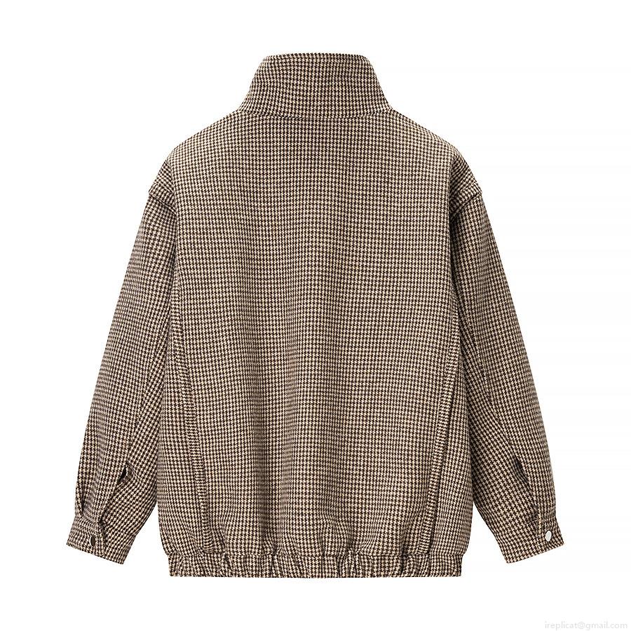 • Women's Houndstooth Pattern Stand Collar Jacket Retro Loose Fit Zipper Bomber Jacket Brown Tweed Texture Long Sleeve Casual Commute Outwear Fashion Streetwear Coat for Ladies