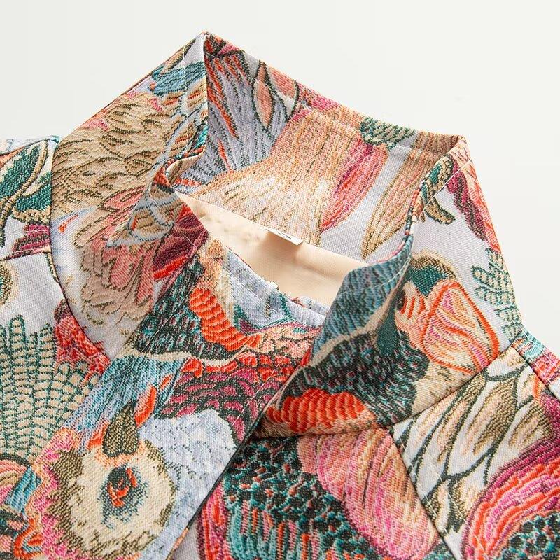 • Women's Jacket Coat 100% Polyester Heavy Duty Jacquard Fabric Metallic Zipper Long Sleeve Lapel Collar Front Pockets Bird Floral Print Vintage European Street Fashion Regular Fit Women Lady