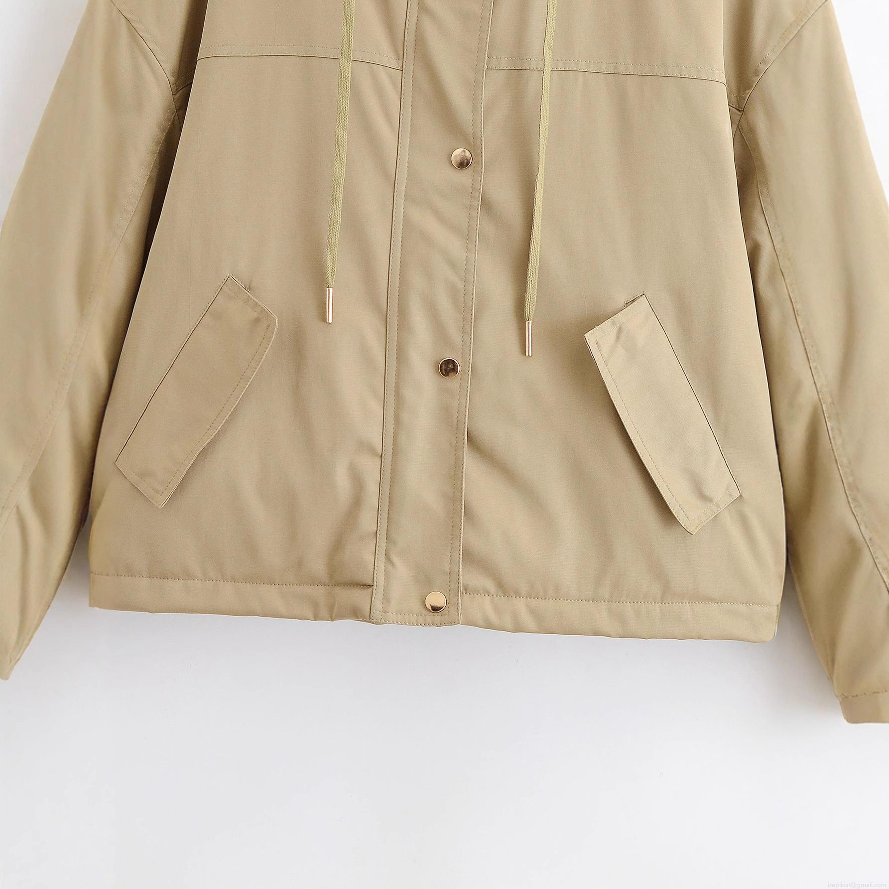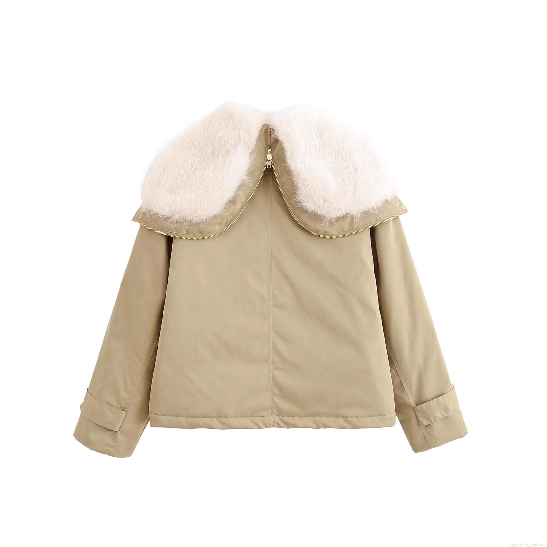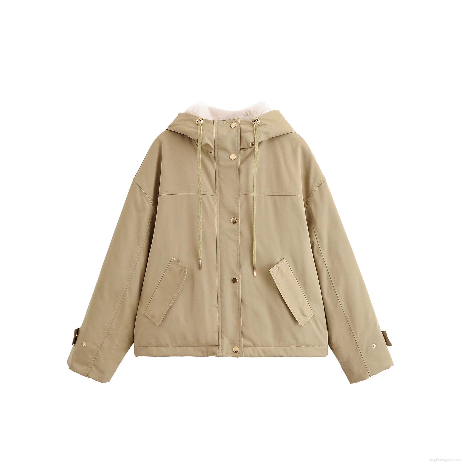 • Women's Khaki Faux Fur Collar Parka Jacket Casual Hooded Outerwear With Drawstring And Metal Buttons Winter Warm Short Coat