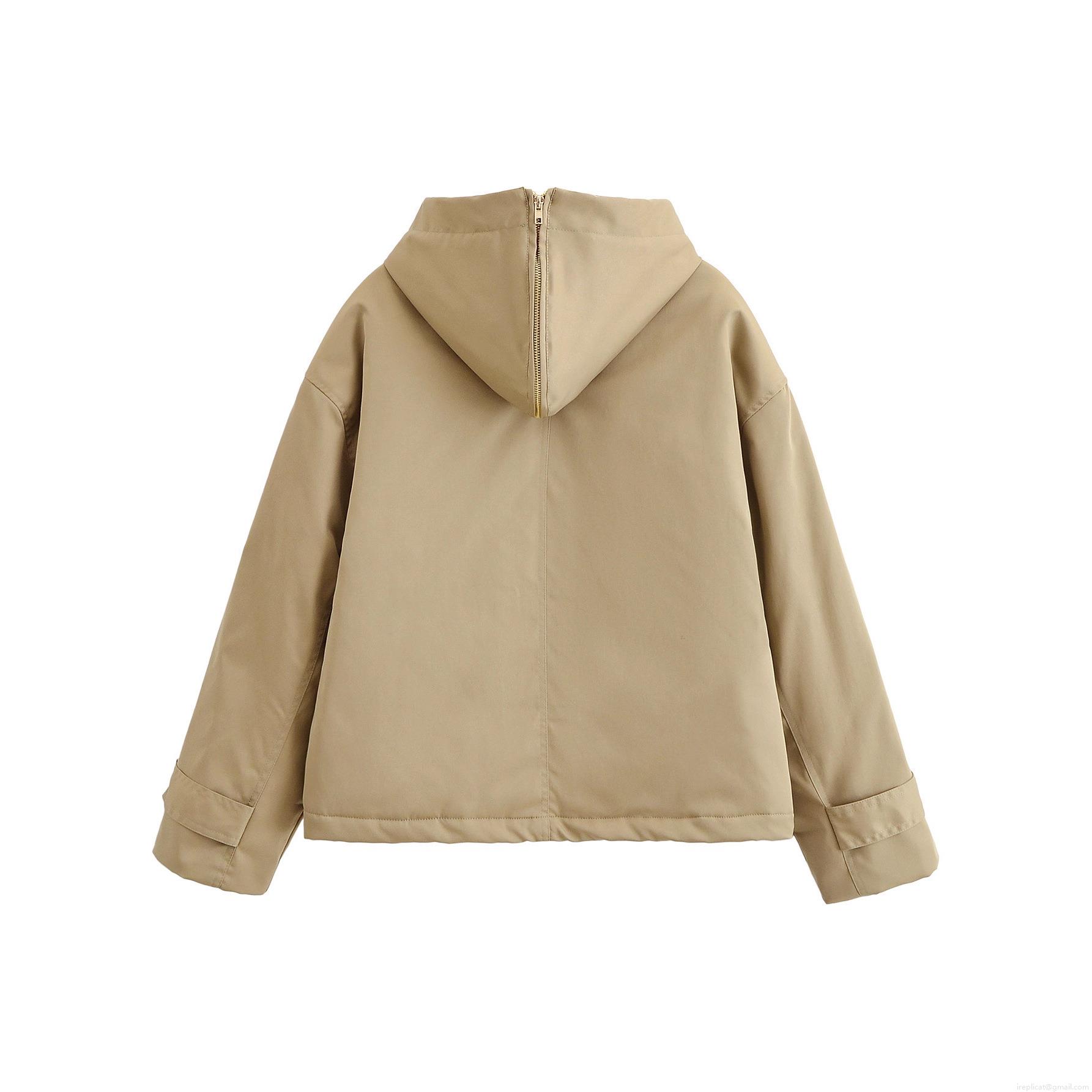 Women's Khaki Faux Fur Collar Parka Jacket Casual Hooded Outerwear With Drawstring And Metal Buttons Winter Warm Short Coat
