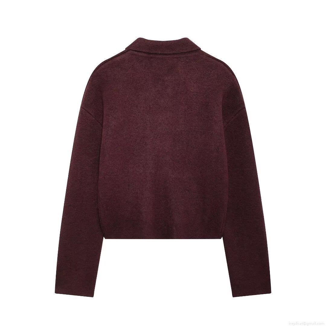 Women's Knit Bomber Jacket 100% Polyester Full Zipper Lapel Collar Long Sleeve Outerwear With Pockets Solid Burgundy Autumn Streetwear Casual Coat