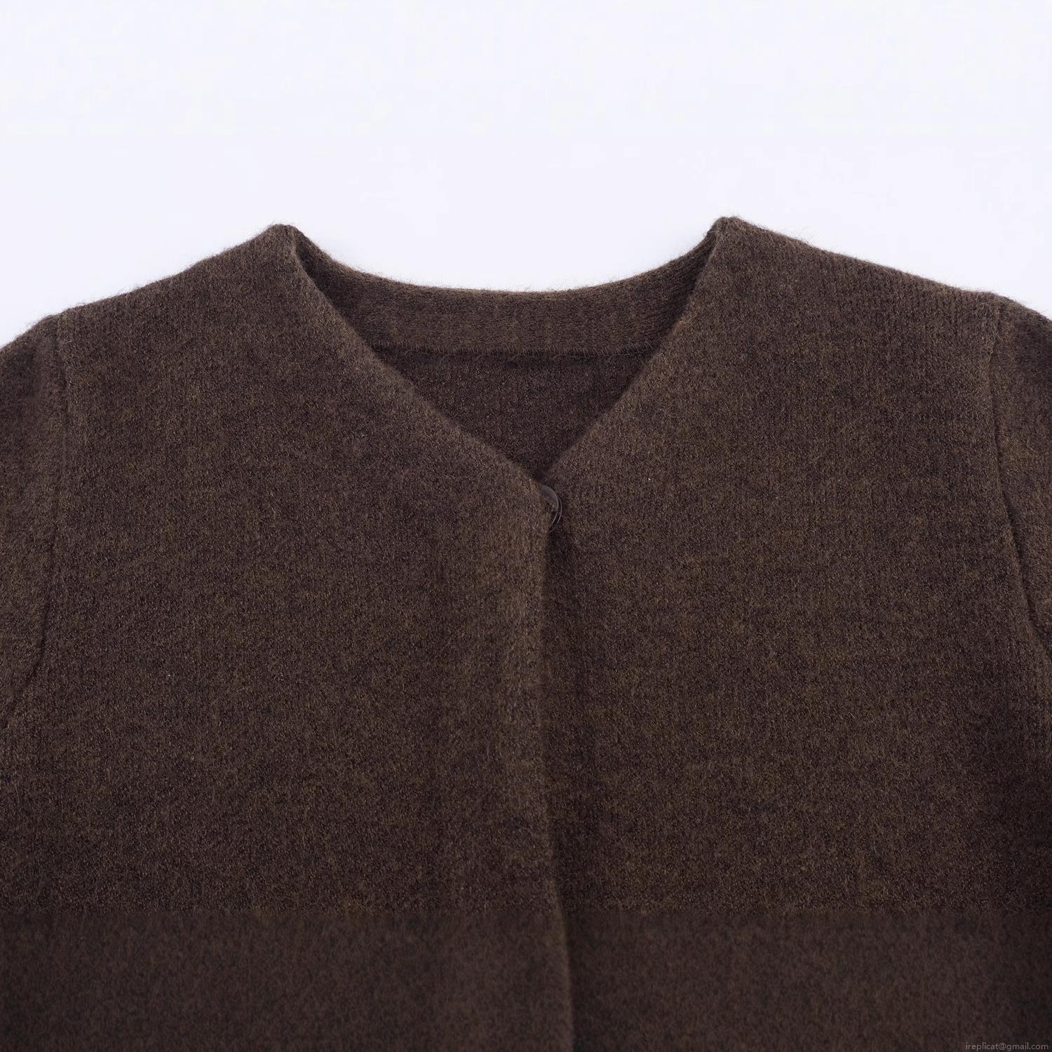 • Women's Knit Jacket Faux Fur Patchwork Polyester Short Coat Elegant Coffee Solid Casual Cardigan Outwear For Ladies Autumn Winter