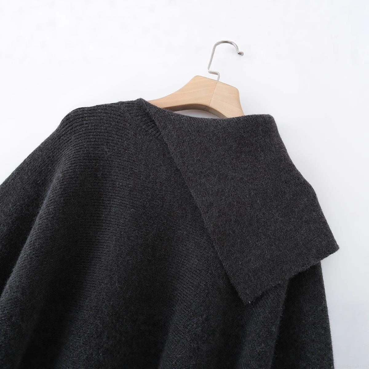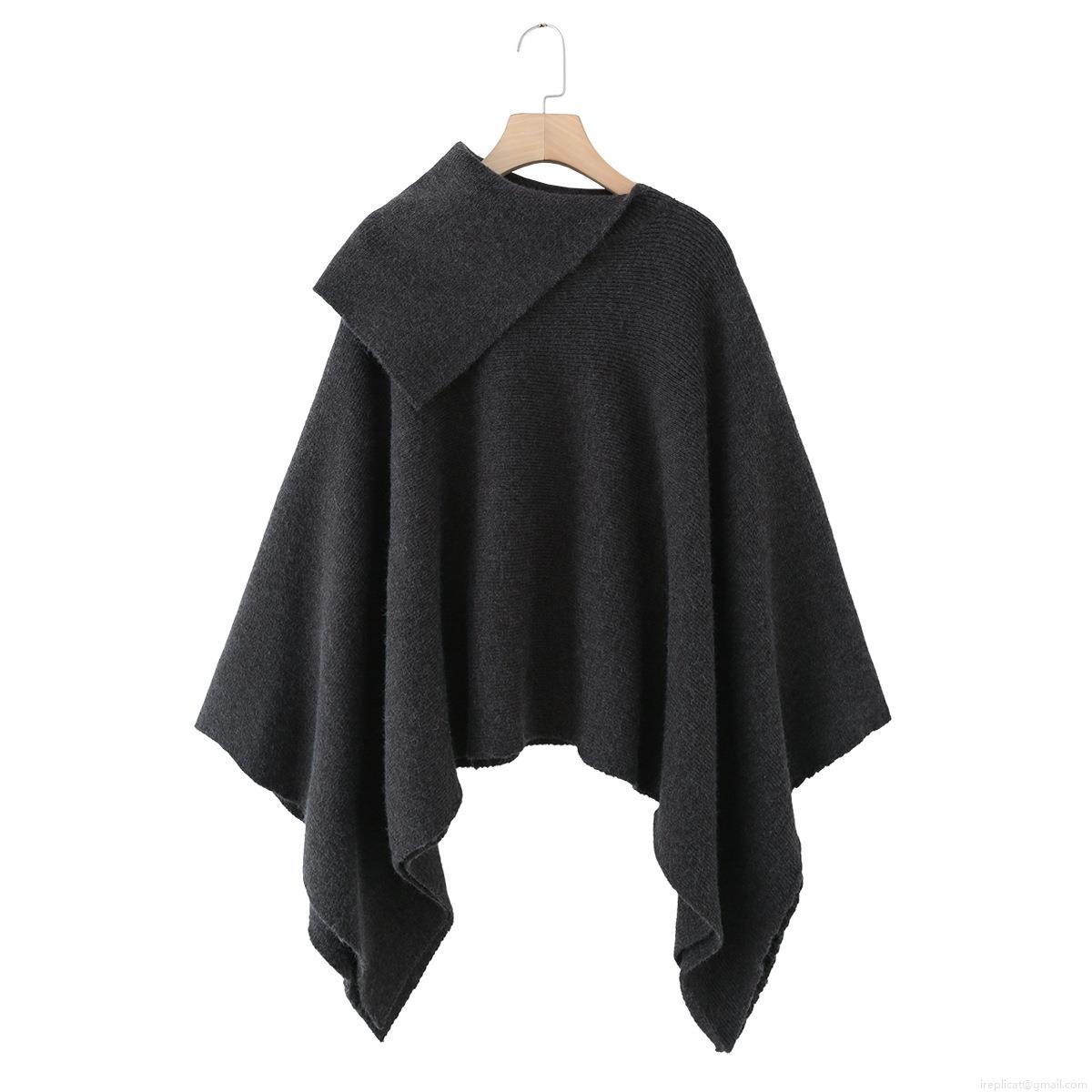 Solid Color, Irregular Hem, Shawl Design, Knitted Texture, Asymmetrical Collar
