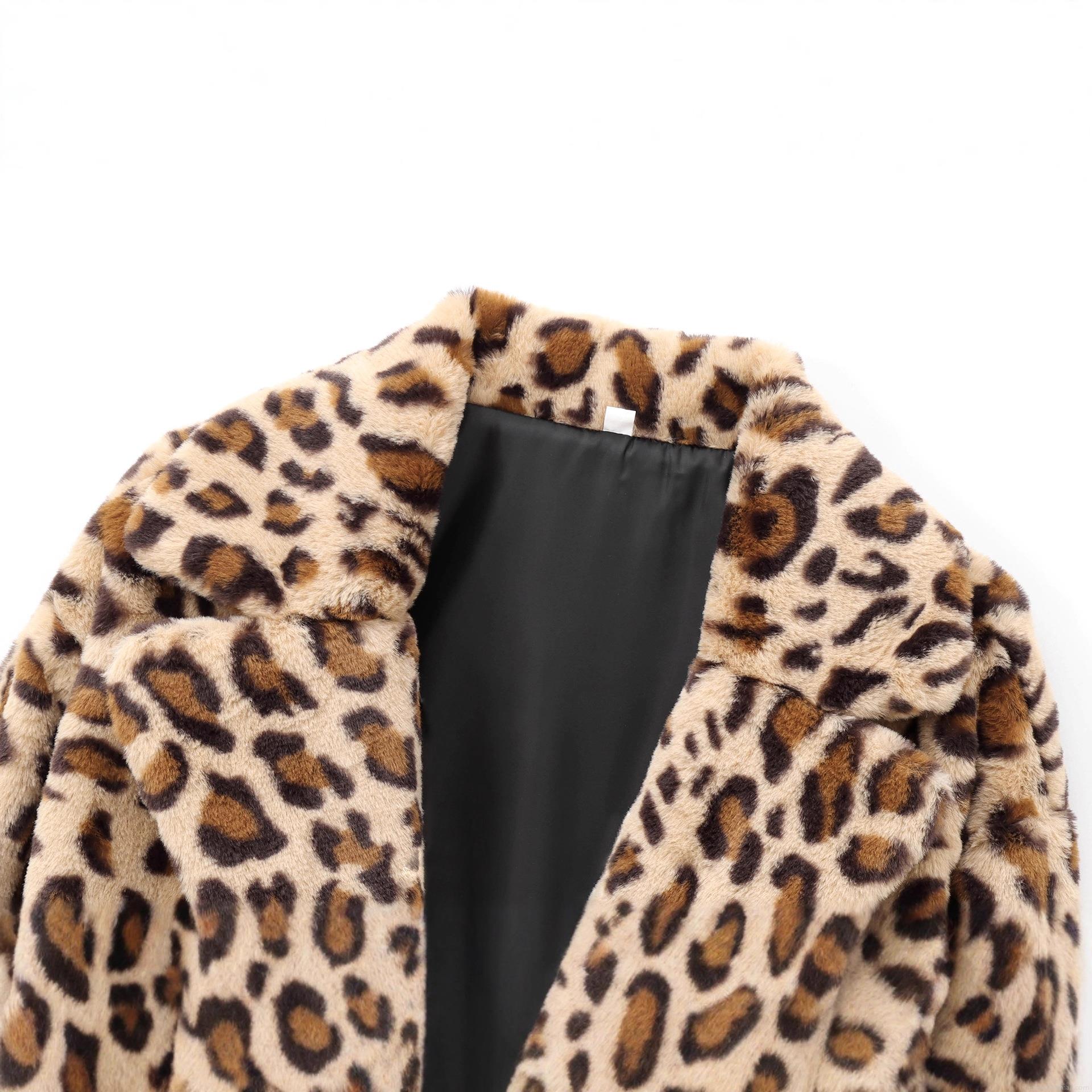 Women's Leopard Print Faux Fur Coat Lapel Collar Long Sleeve Open Front Thick Warm Winter Outerwear Jacket Casual Fashion Streetwear
