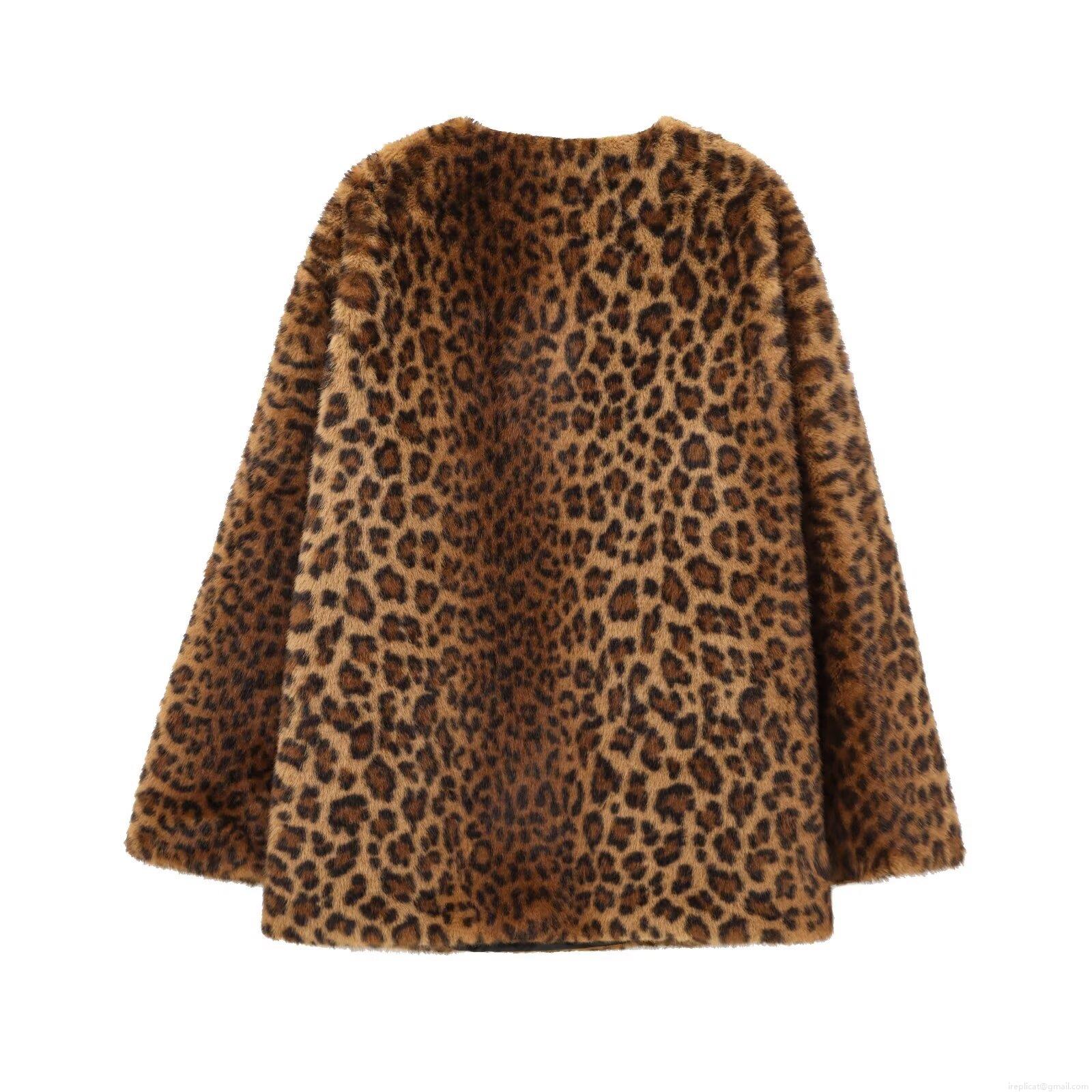 • Women's Leopard Print Faux Fur Coat Winter Round Neck Long Sleeve Mid Length Warm Streetwear Outerwear Fashion Thick Polyester Jacket