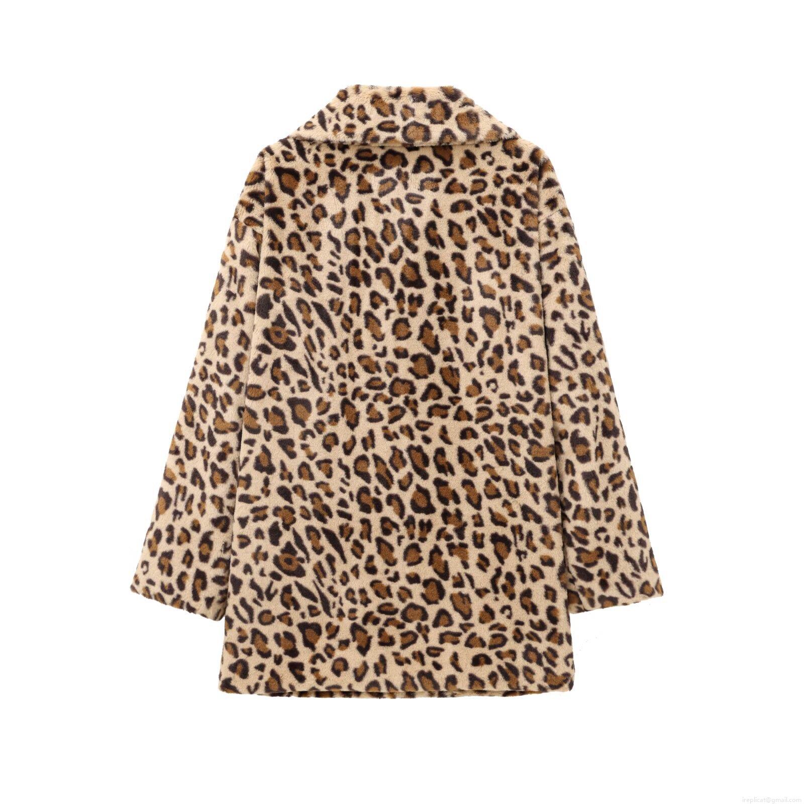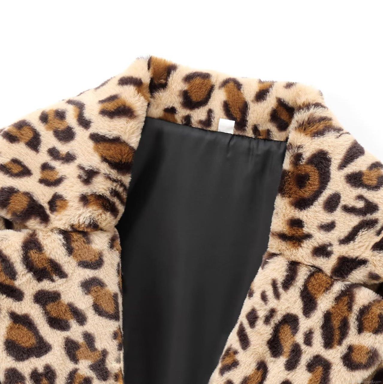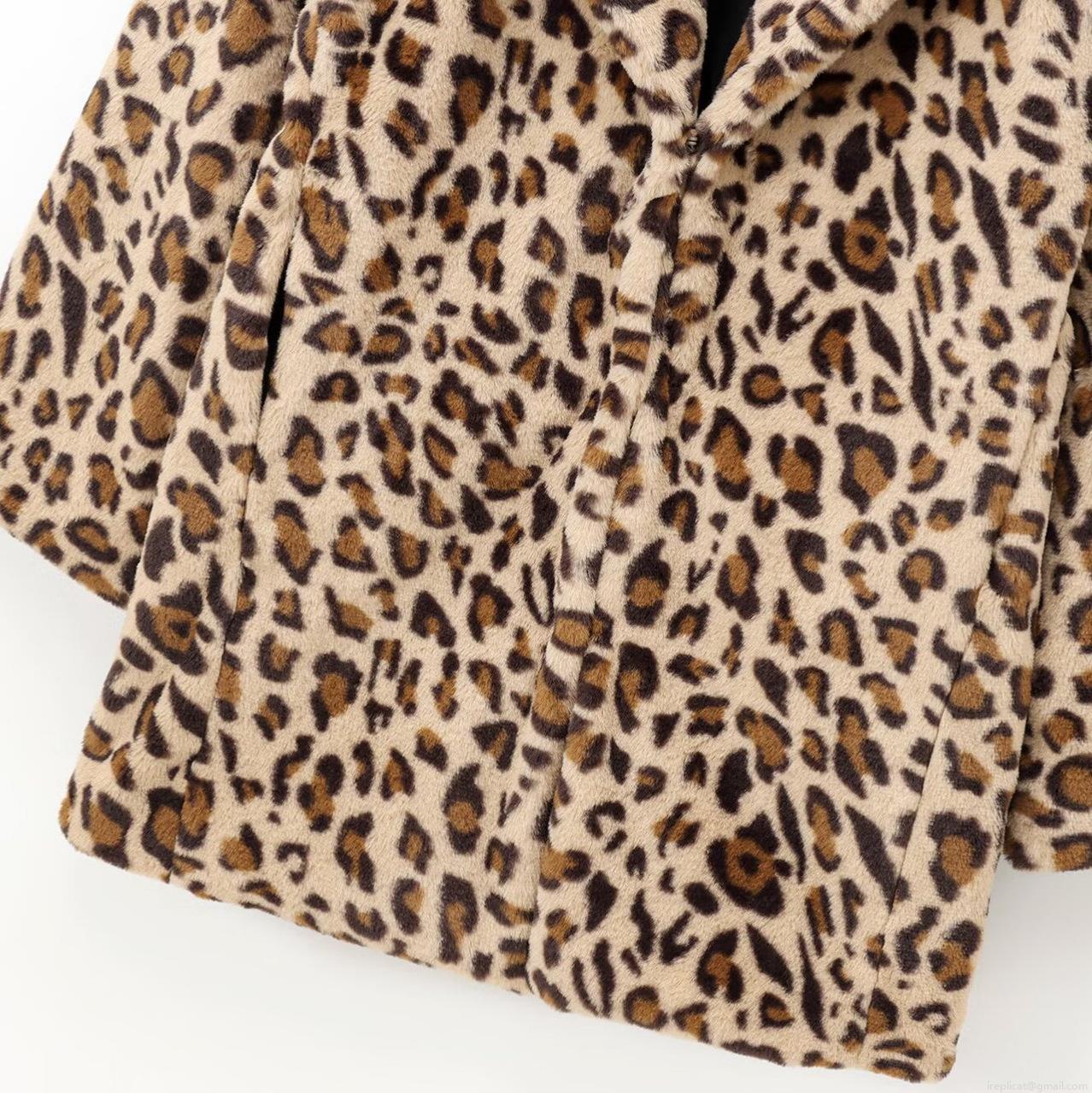 • Women's Leopard Print Faux Fur Coat Winter Warm Polyester Plush Jacket With Large Lapel Long Sleeve Casual Mid-length Outerwear For Ladies Fashion