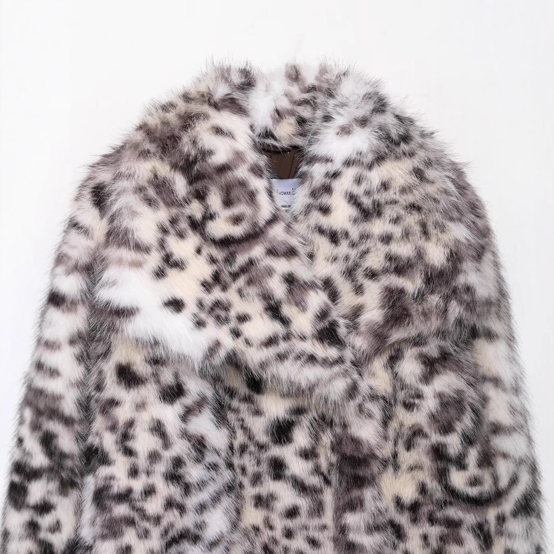 • Women's Leopard Print Faux Fur Jacket Oversized Lapel Collar Streetwear Warm Winter Coat Thick Shaggy Outerwear With Pockets For Ladies Fashion Animal Print
