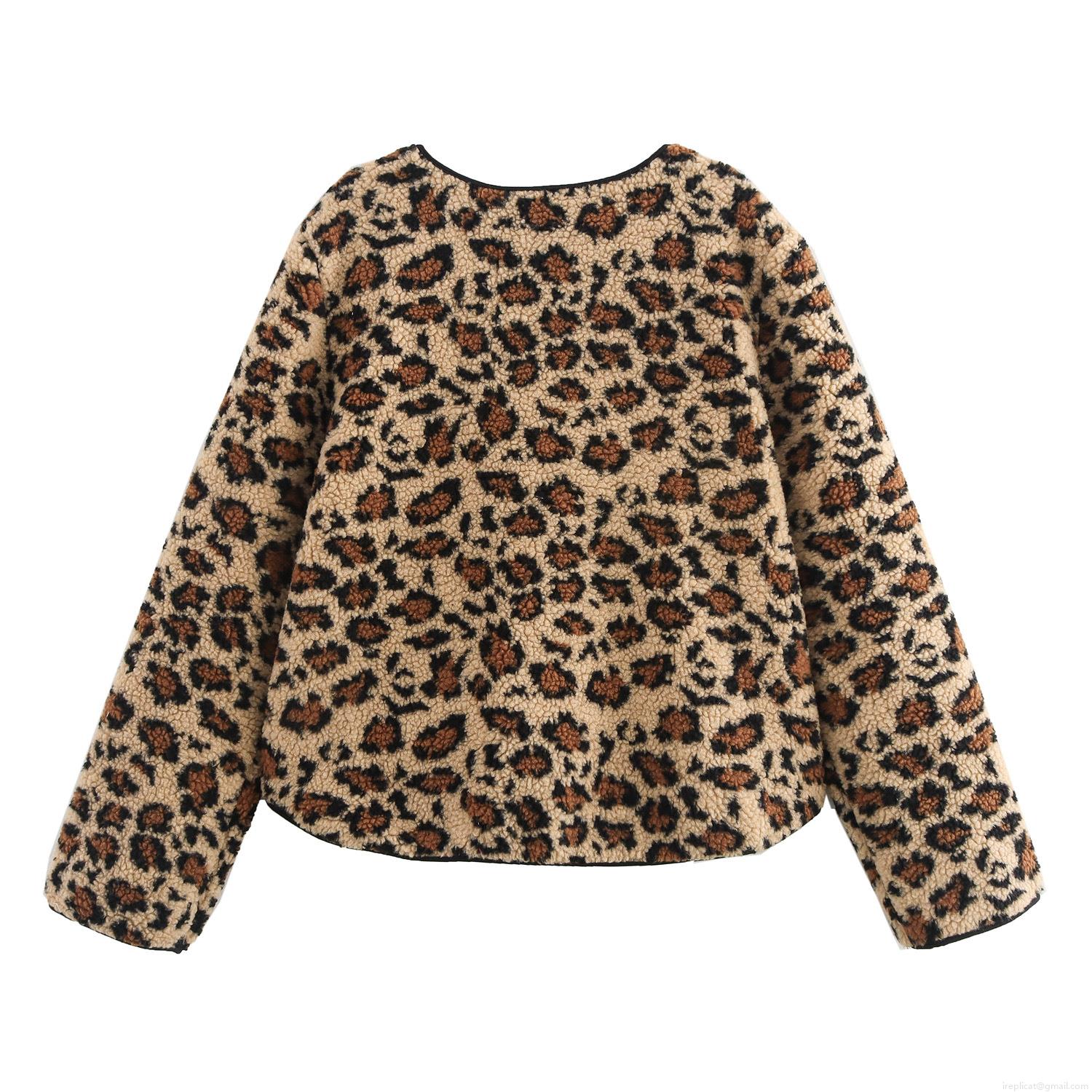 Women's Leopard Print Faux Sherpa Fleece Jacket American Retro Loose Fit Bow Tie Closure Outerwear Casual Warm Fall Long Sleeve Coat for Ladies