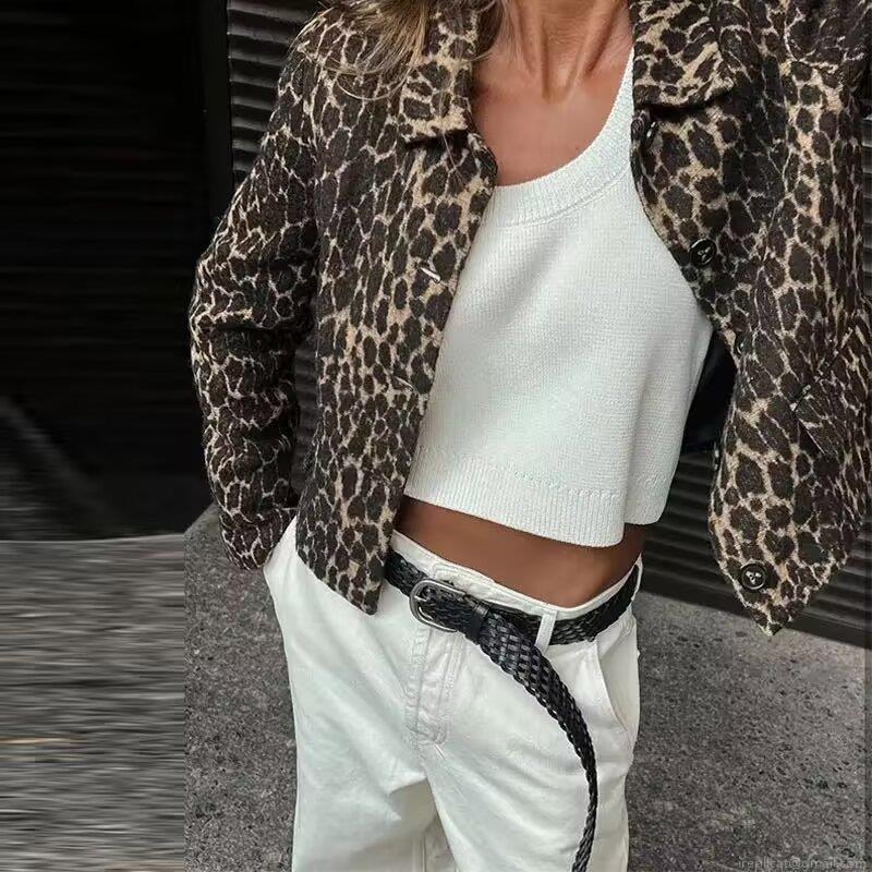 Women's Leopard Print Jacket Casual Lapel Button Down Coat Fashion Short Outwear With Pockets For Autumn Winter Streetwear Lady Clothing