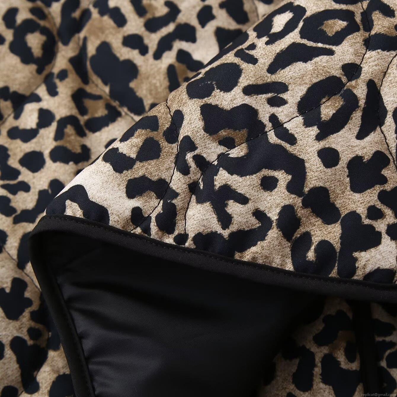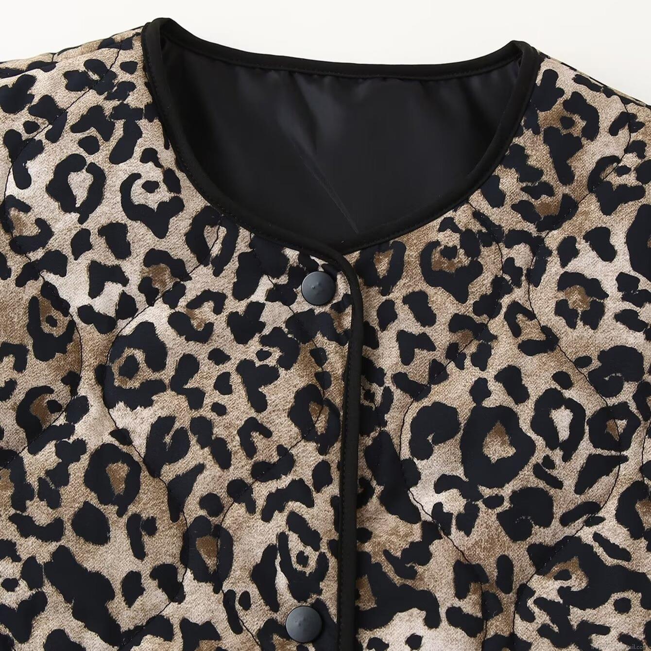 • Women's Leopard Print Quilted Jacket Loose Fit Long Sleeve Round Neck Padded Coat Winter Warm Outerwear Casual Button Up Jacket with Pockets