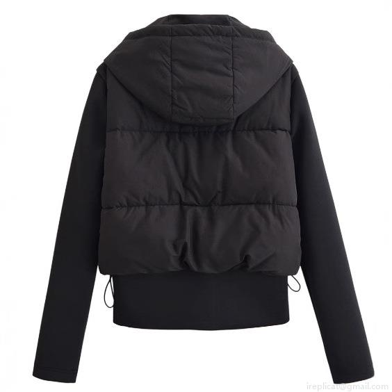 • Women's Lightweight Quilted Jacket With Hood Splicing Design Long Sleeve Zipper Closure Fashion Casual Solid Black Puffer Outwear For Women Autumn Winter