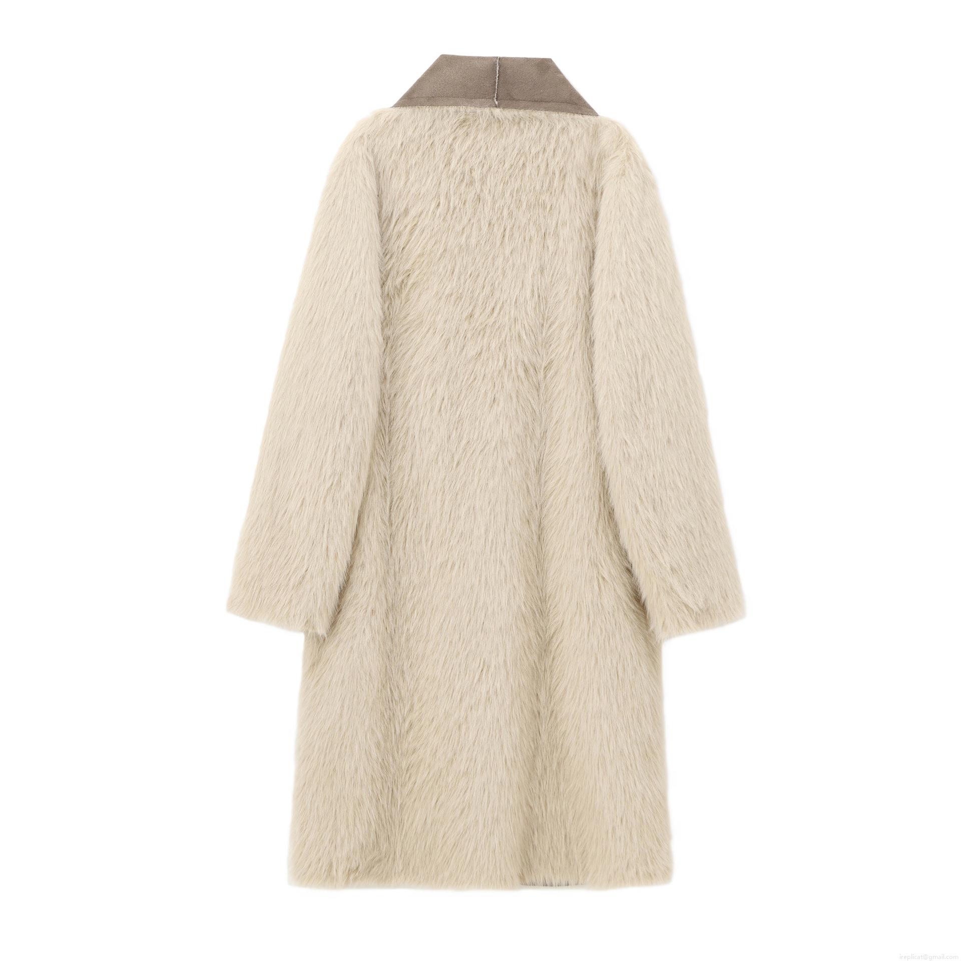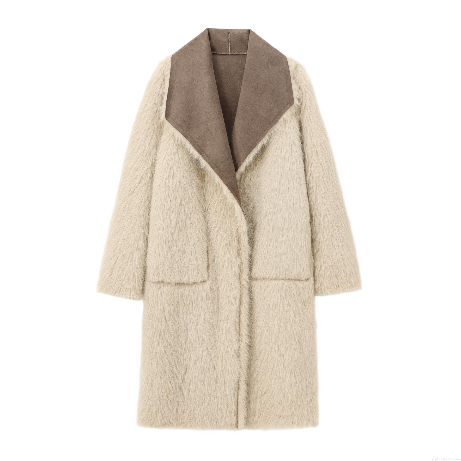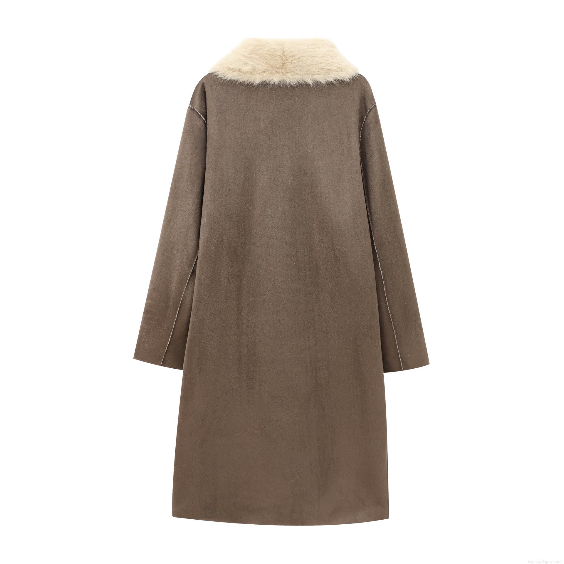 • Women's Long Coat Double Sided Faux Suede With Faux Fur Collar Warm Winter Outwear Elegant Lapel Long Sleeve Jacket For Women