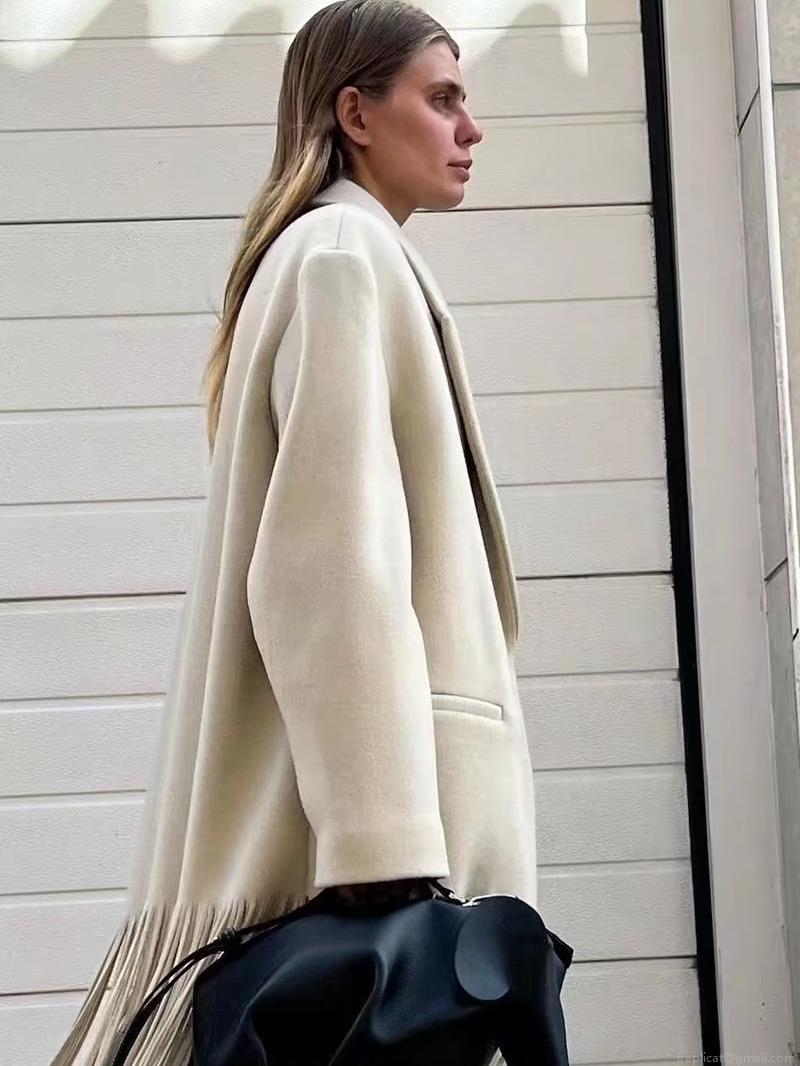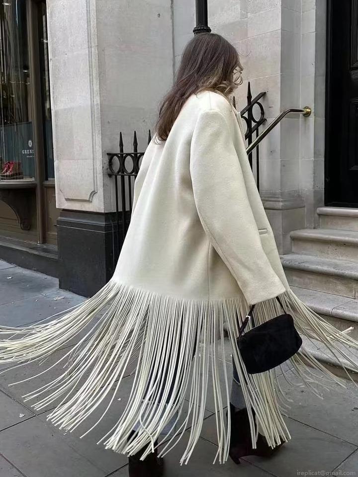 • Women's Long Fringe Hem Wool Blend Coat Chic Lapel Single Button Solid Color Streetwear Outerwear For Autumn Winter Ladies