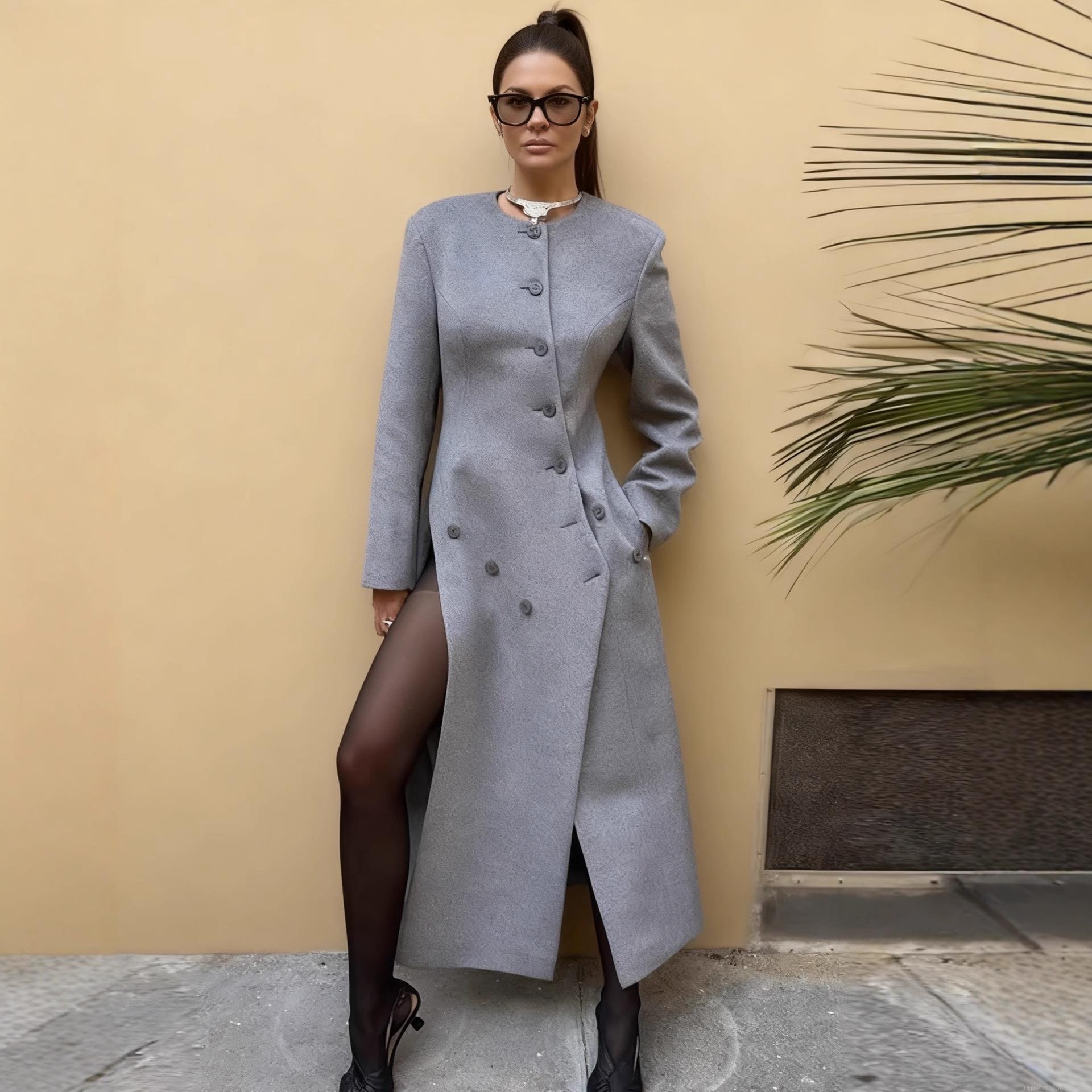 • Women's Long Grey Woolen Blend Coat With Asymmetric Buttons Splice Side Slit Winter Warm Overcoat For Office Lady Streetwear Casual Fashion