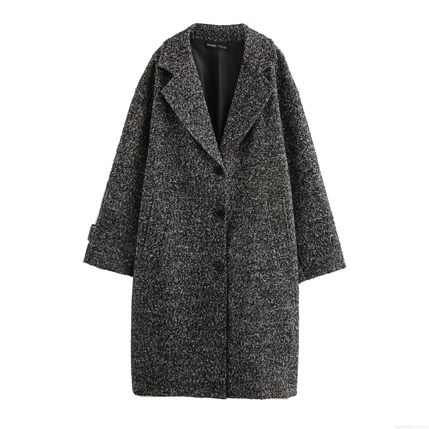 • Women's Long Herringbone Woolen Coat Fashion Dropped Shoulder Twill Outerwear Trench Coat For Autumn Winter Ladies Streetwear Tweed Overcoat