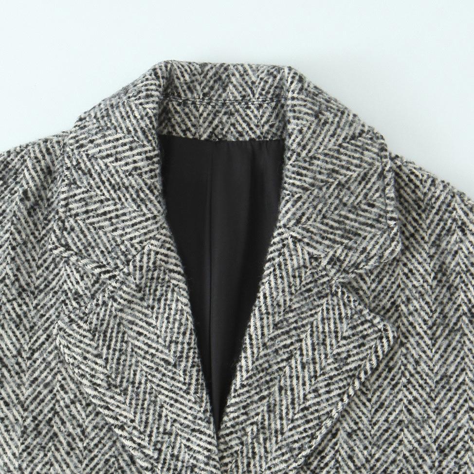 • Women's Long Herringbone Woolen Coat Winter Casual Loose Lapel Overcoat With Buttons Grey British Style Trench Coat For Women