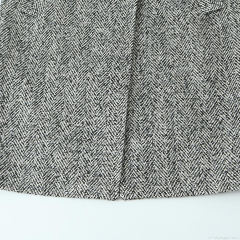 Women's Long Herringbone Woolen Coat Winter Casual Loose Lapel Overcoat With Buttons Grey British Style Trench Coat For Women
