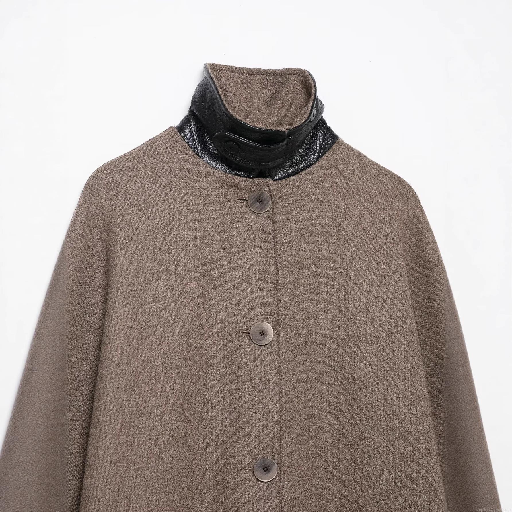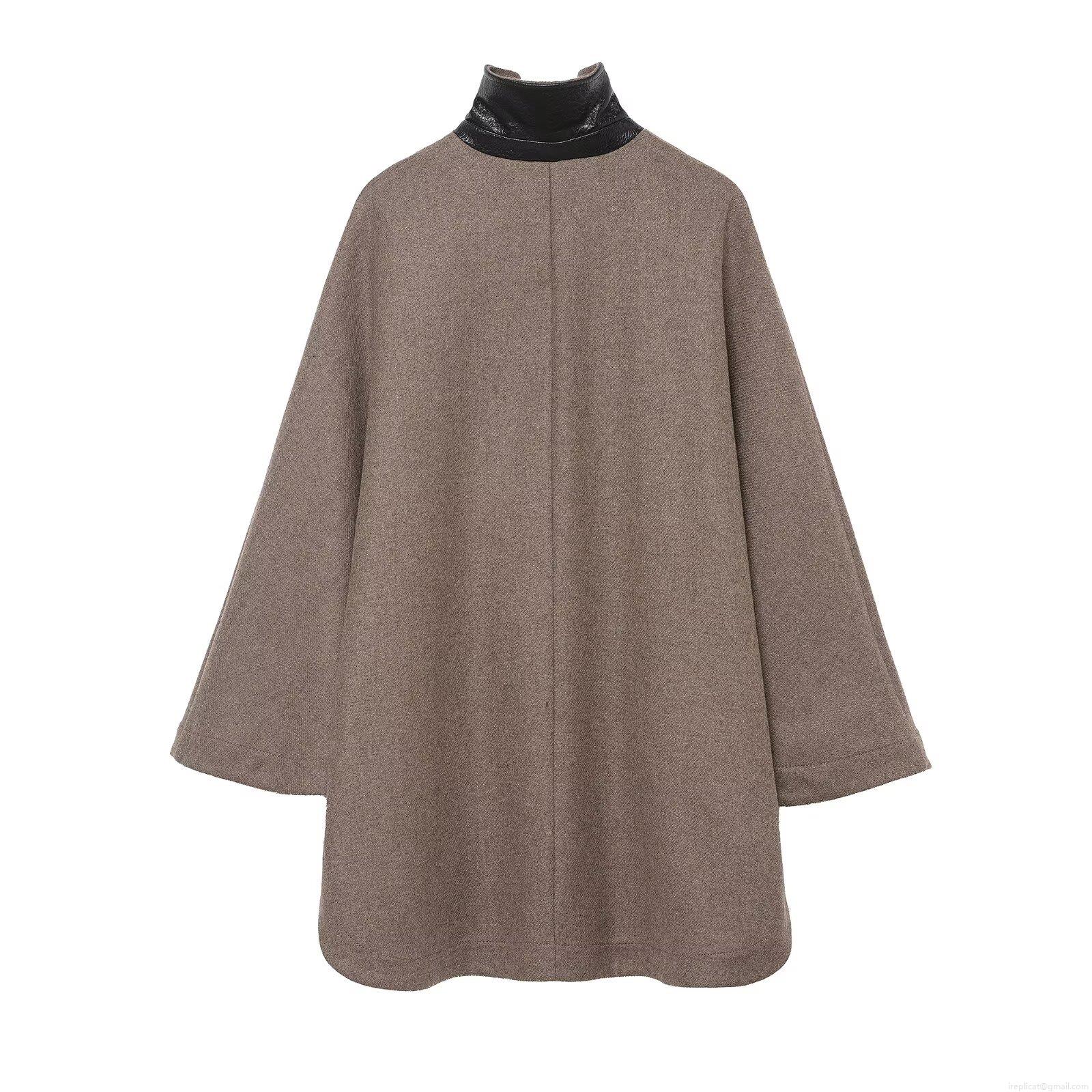 • Women's Long Overcoat Woolen Feel Polyester With Faux Leather Stand Collar Single Breasted Loose Outerwear For Autumn Winter Elegant Retro Lady Coat