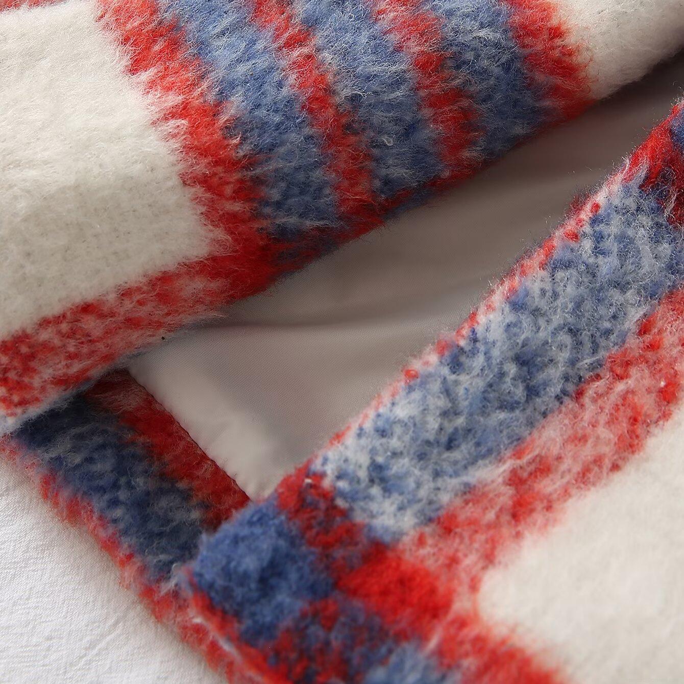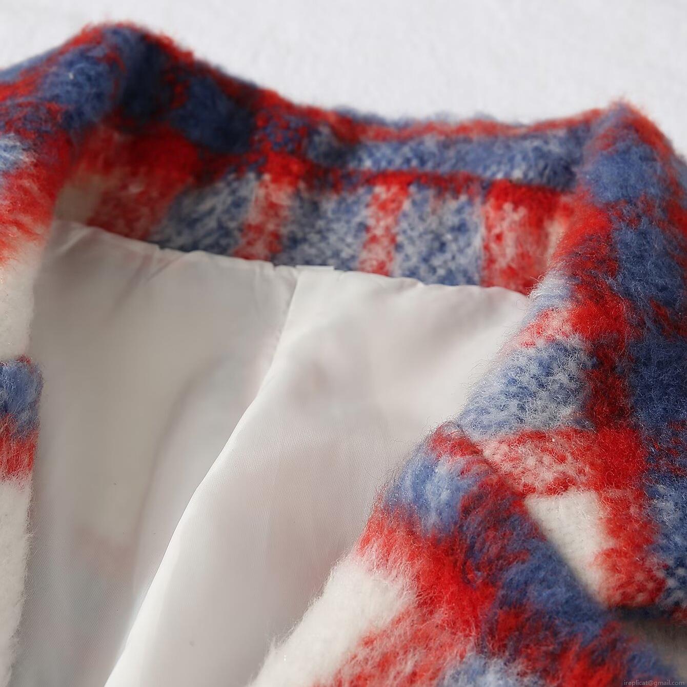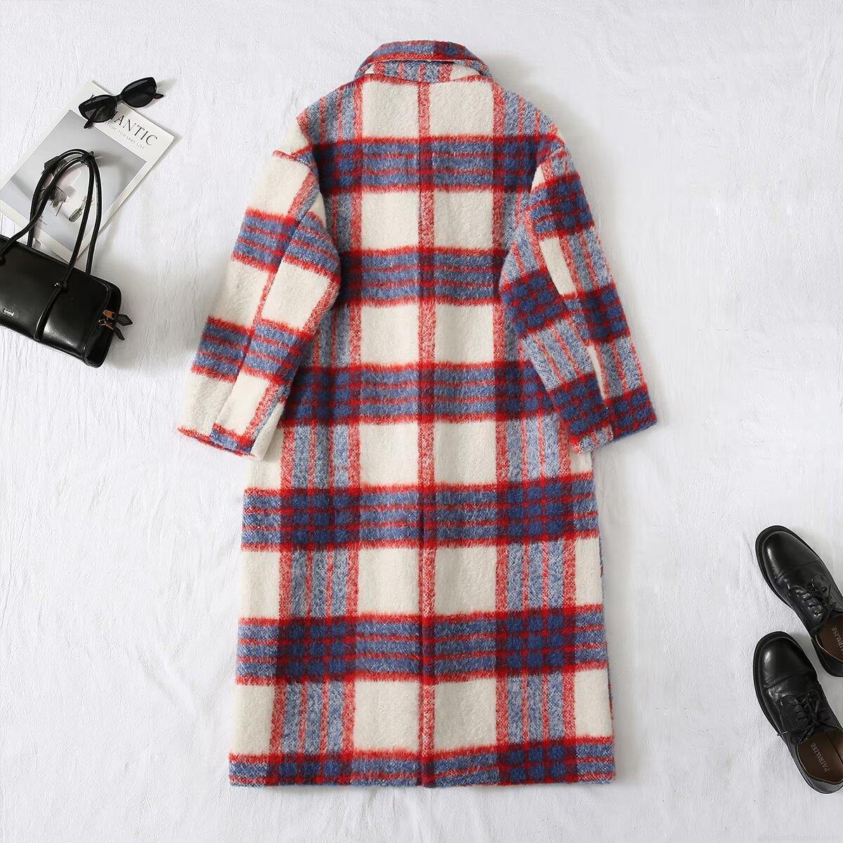 • Women's Long Plaid Overcoat Retro Red Blue White Checkered Woolen Look Trench Coat Jacket For Autumn Winter Outdoor Elegant Ladies Office Daily Wear