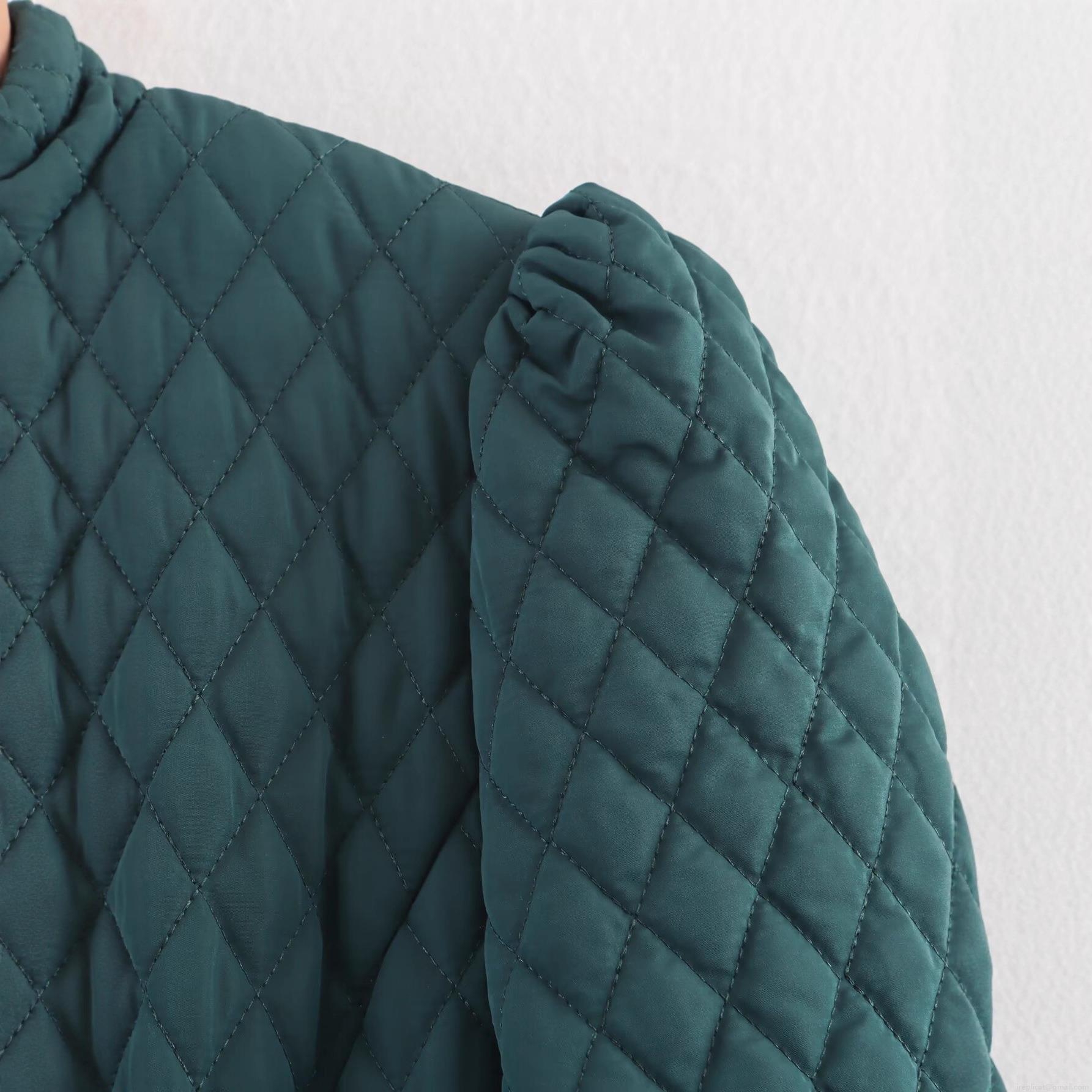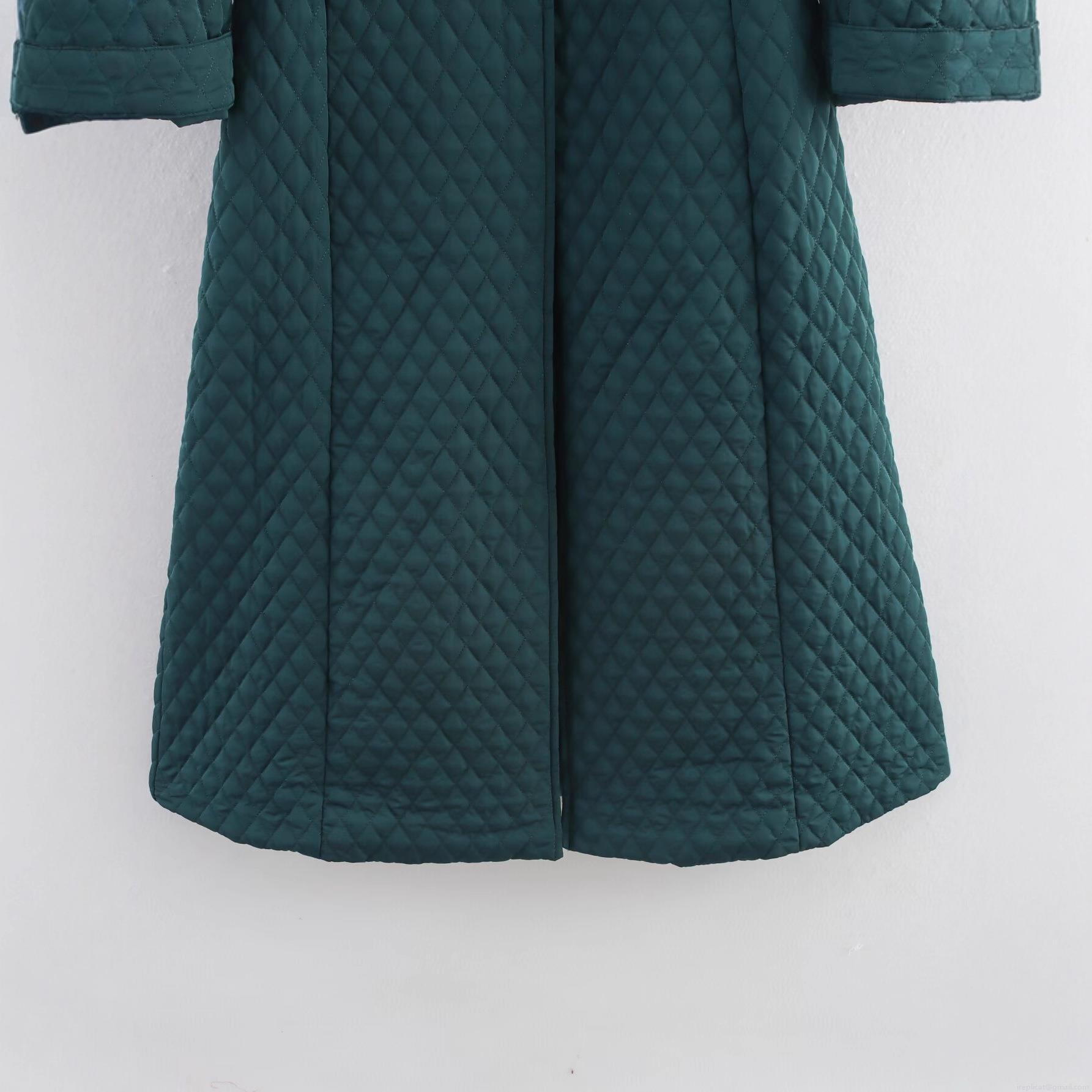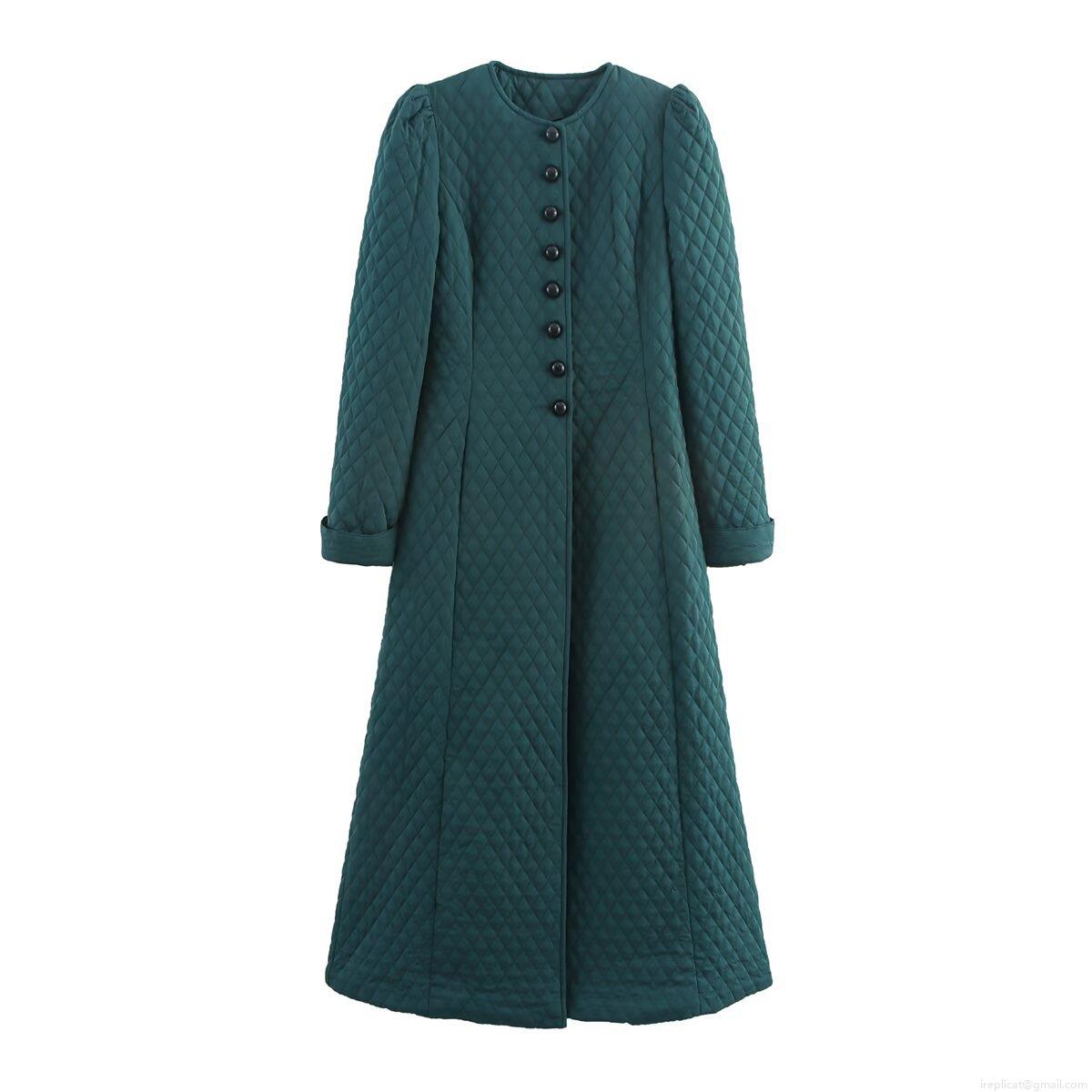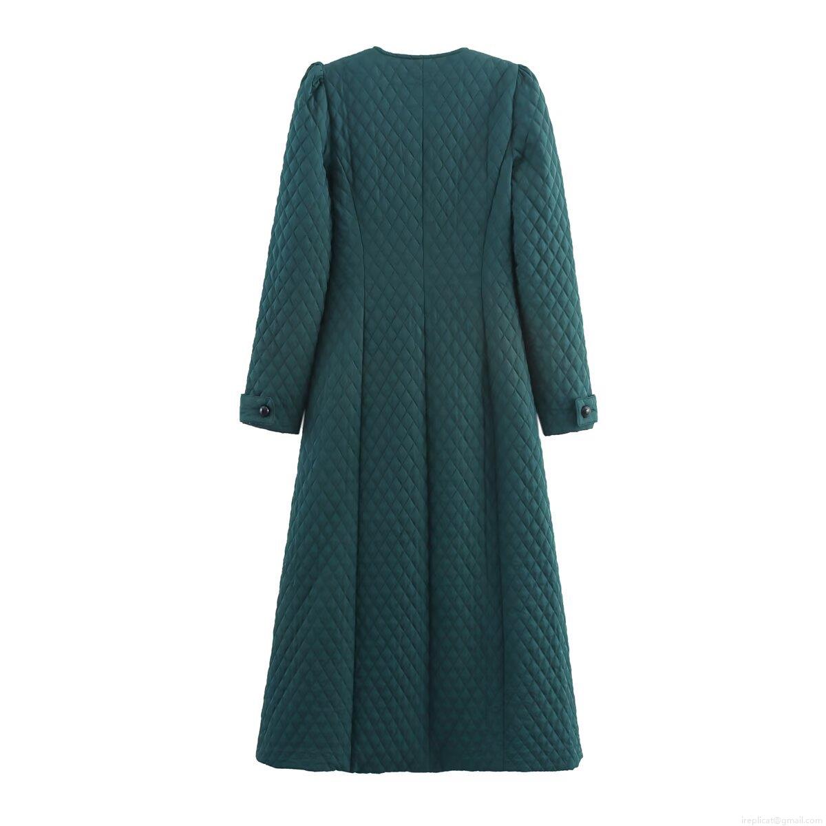 • Women's Long Quilted Jacket Polyester Rhombic Grid Round Neck Single Breasted Coat Slim Fit Outerwear Dark Green Streetwear Casual Winter Warm Overcoat