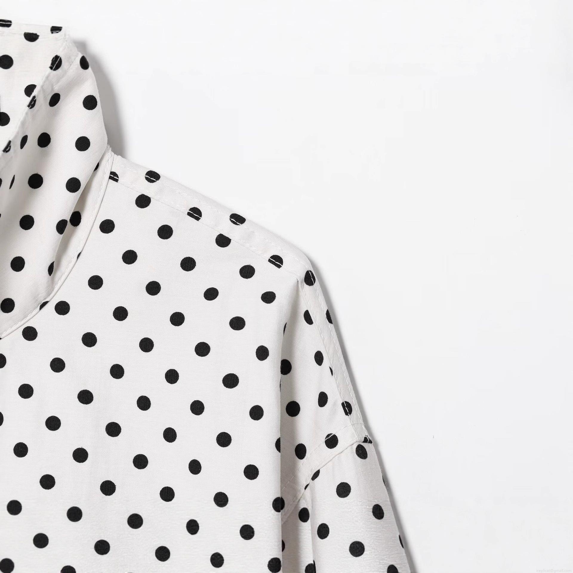 • Women's Long Sleeve Polka Dot Stand Collar Jacket With Drawstring Hem Casual Loose Zip Up Outerwear Streetwear Fashion For Fall
