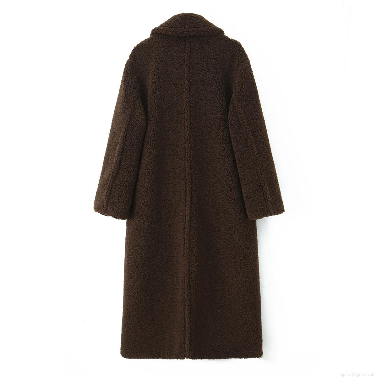 Women's Long Teddy Fleece Coat Faux Fur Thick Warm Solid Coffee Jacket Outwear Lapel Single Breasted Winter Fashion Elegant Streetwear Overcoat
