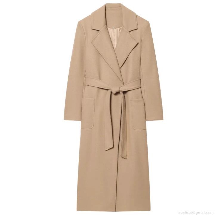 • Women's Long Wool Blend Coat Elegant Solid Color Notched Collar Suede Trench Coat With Belt For Winter Daily Casual Lady Warm Outerwear
