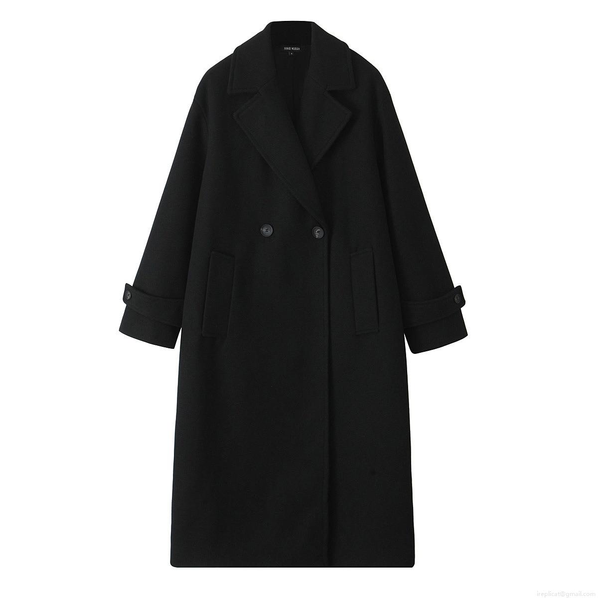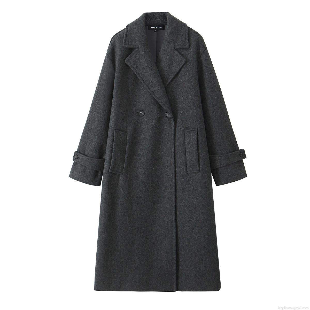 • Women's Long Woolen Coat Autumn Winter Loose Double Breasted Lapel Trench Coat Plain Solid Color Casual Overcoat For Women Fashion Streetwear Outerwear