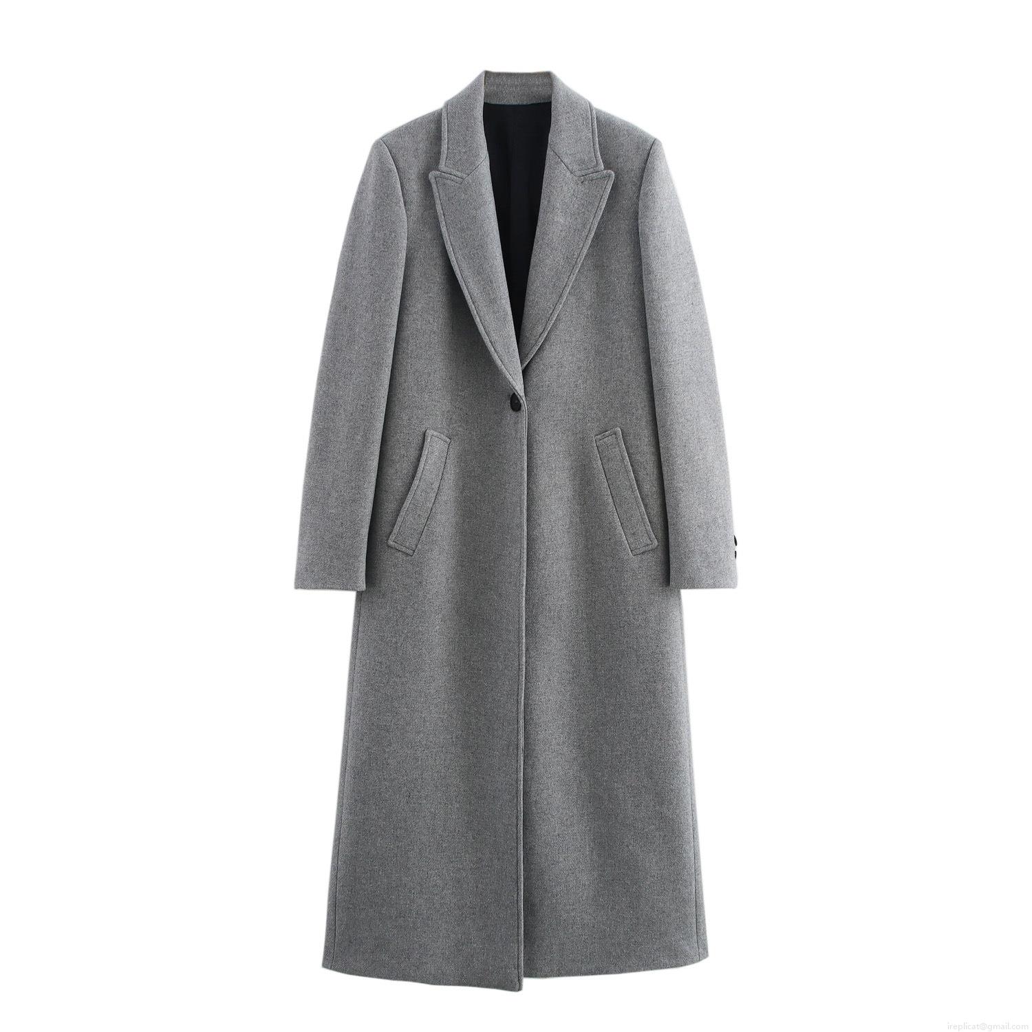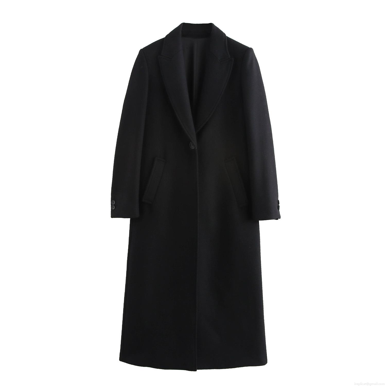 • Women's Long Woolen Coat Classic Notch Lapel Single Breasted Overcoat Autumn Winter Warm Loose Fit Outerwear Solid Color Commuter Jacket for Ladies
