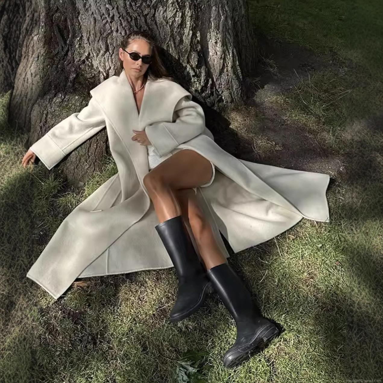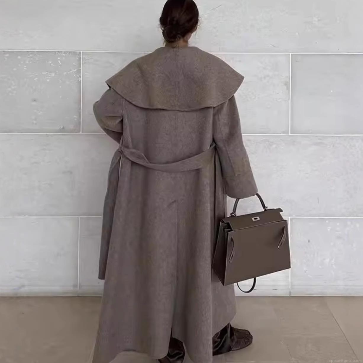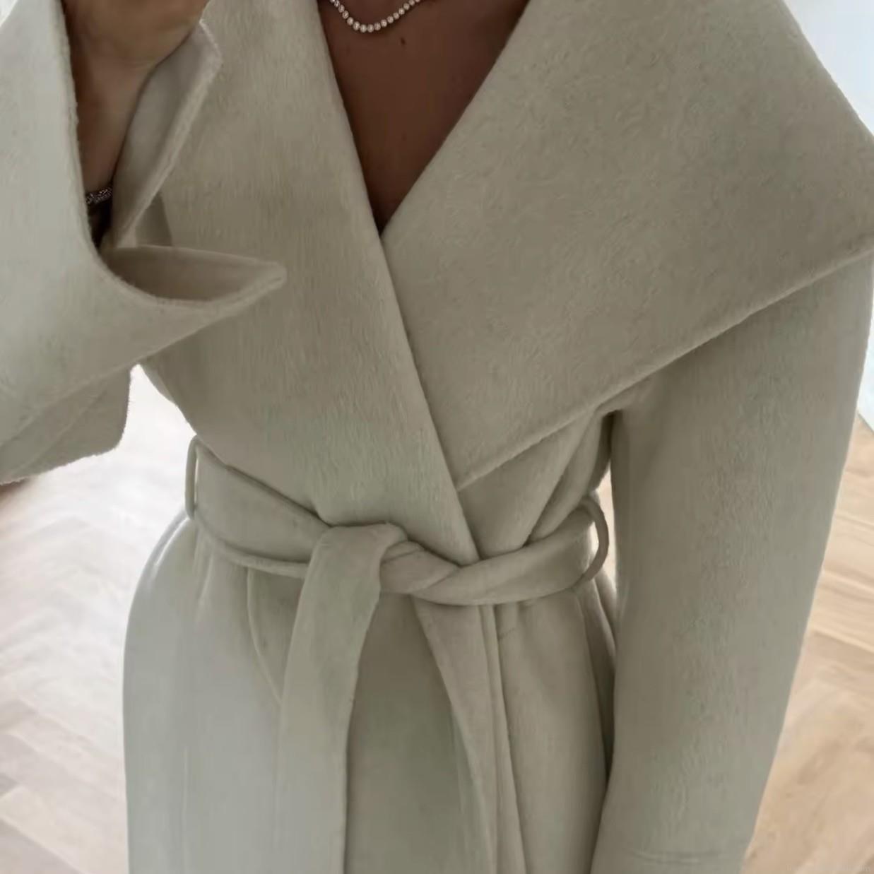 • Women's Long Woolen Coat Elegant Belted Double-Sided Camel Hair Blend Jacket With Lapel Collar Fashion Casual Winter Trench Coat For Lady
