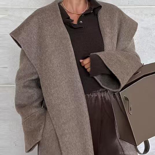 • Women's Long Woolen Coat Elegant British Style Large Lapel Belted Overcoat Polyester Blend Autumn Winter Warm Outerwear For Women Solid Color