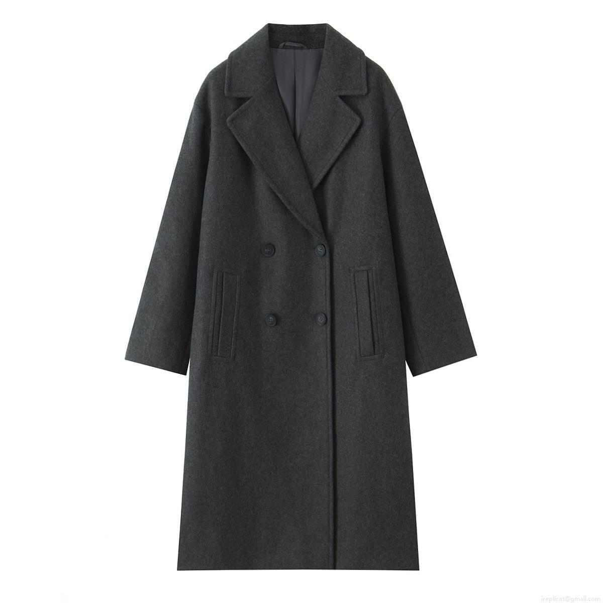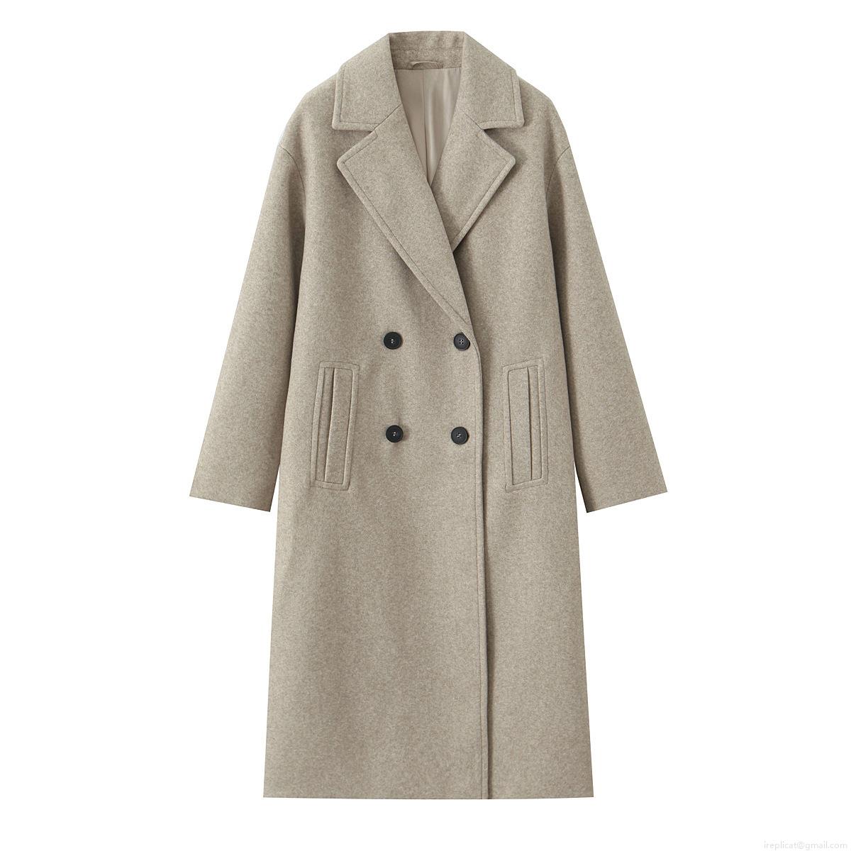 • Women's Long Woolen Coat Elegant Double Breasted Lapel Jacket Solid Color Autumn Winter Outerwear For Lady Fashion Casual Trench Coat