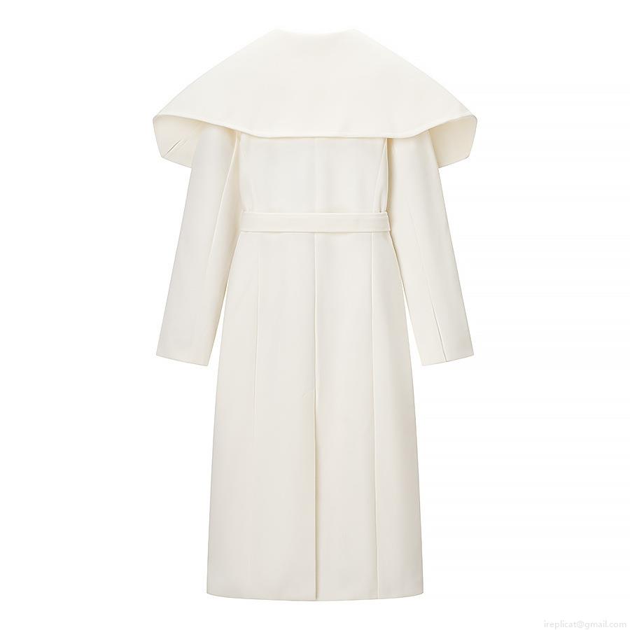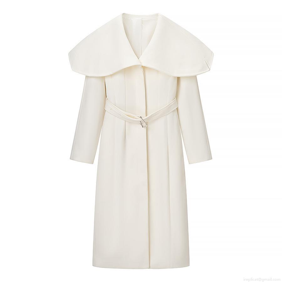 • Women's Long Woolen Coat Elegant Large Lapel Trench Coat With Belt Solid White Thick Warm Outerwear Autumn Winter European Streetwear Ladies Fashion Jacket