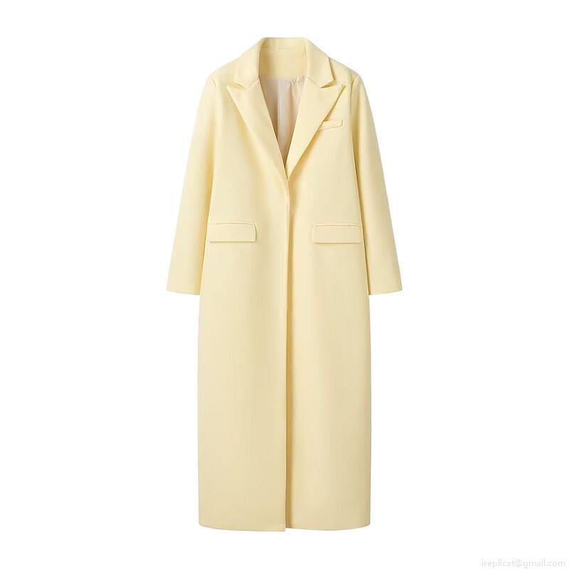 • Women's Long Woolen Coat Elegant Loose Fit Polyester Blend Notched Lapel Solid Pale Yellow Overcoat Casual Autumn Winter Jacket For Women