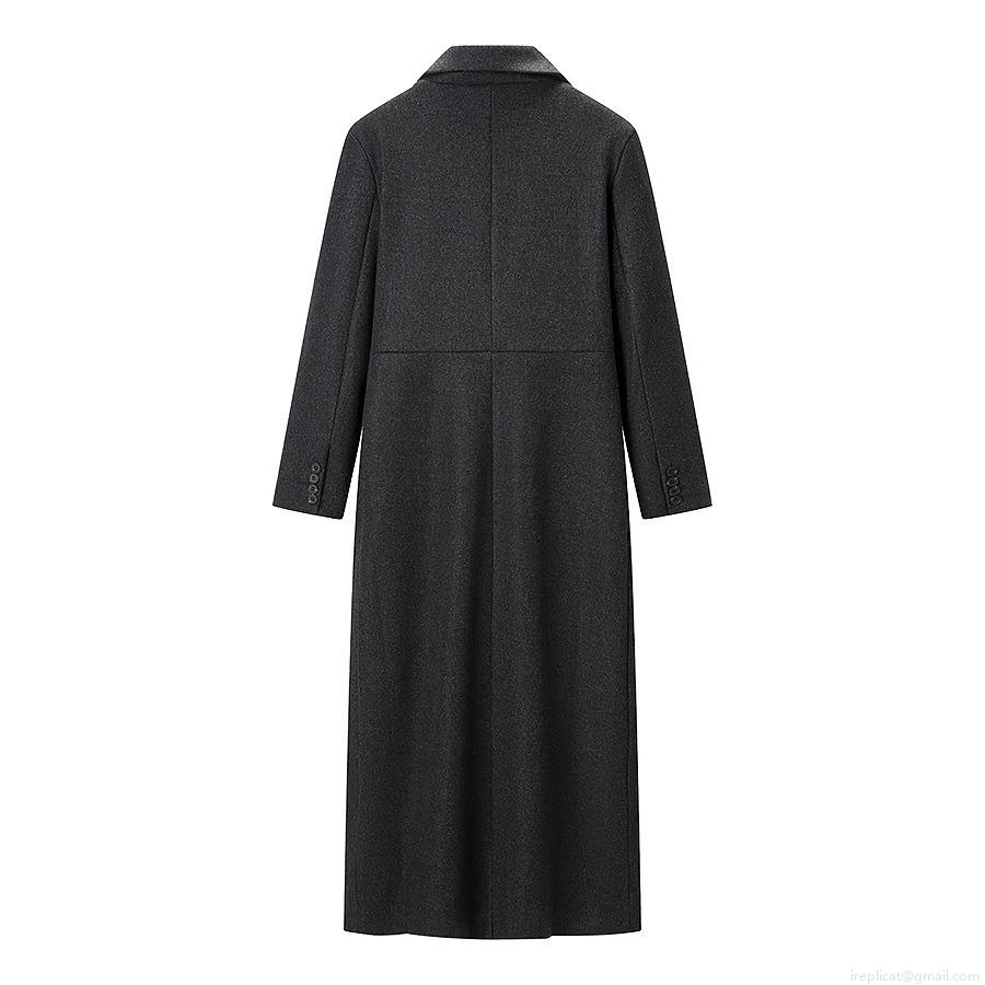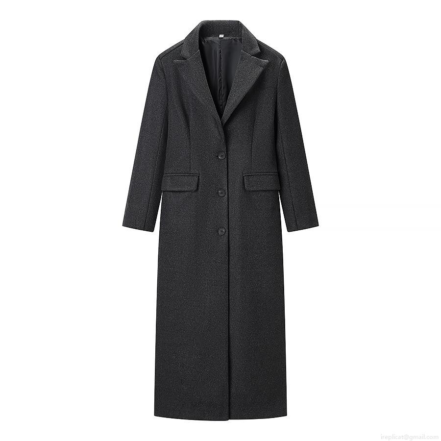 • Women's Long Woolen Coat Elegant Notched Lapel Single Breasted Thick Winter Jacket With Pockets Solid Deep Gray Casual Streetwear Outerwear