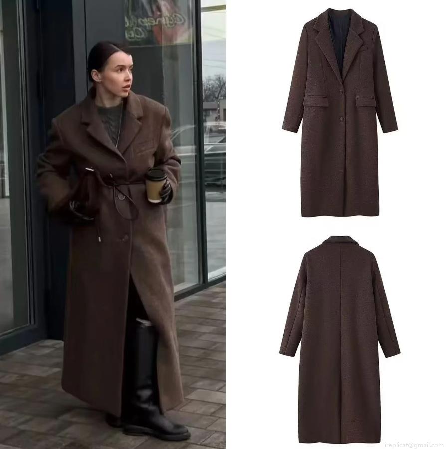 • Women's Long Woolen Coat Elegant Polyester Wool Blend Lapel Single Breasted Overcoat Streetwear Casual Office Winter Fashion Solid Color Maxi Jacket
