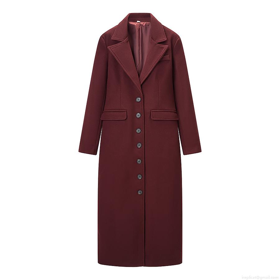 • Women's Long Woolen Coat Elegant Single Breasted Slim Fit Overcoat With Belt Lapel Outerwear Street Style Polyester Winter Autumn Jacket For Women