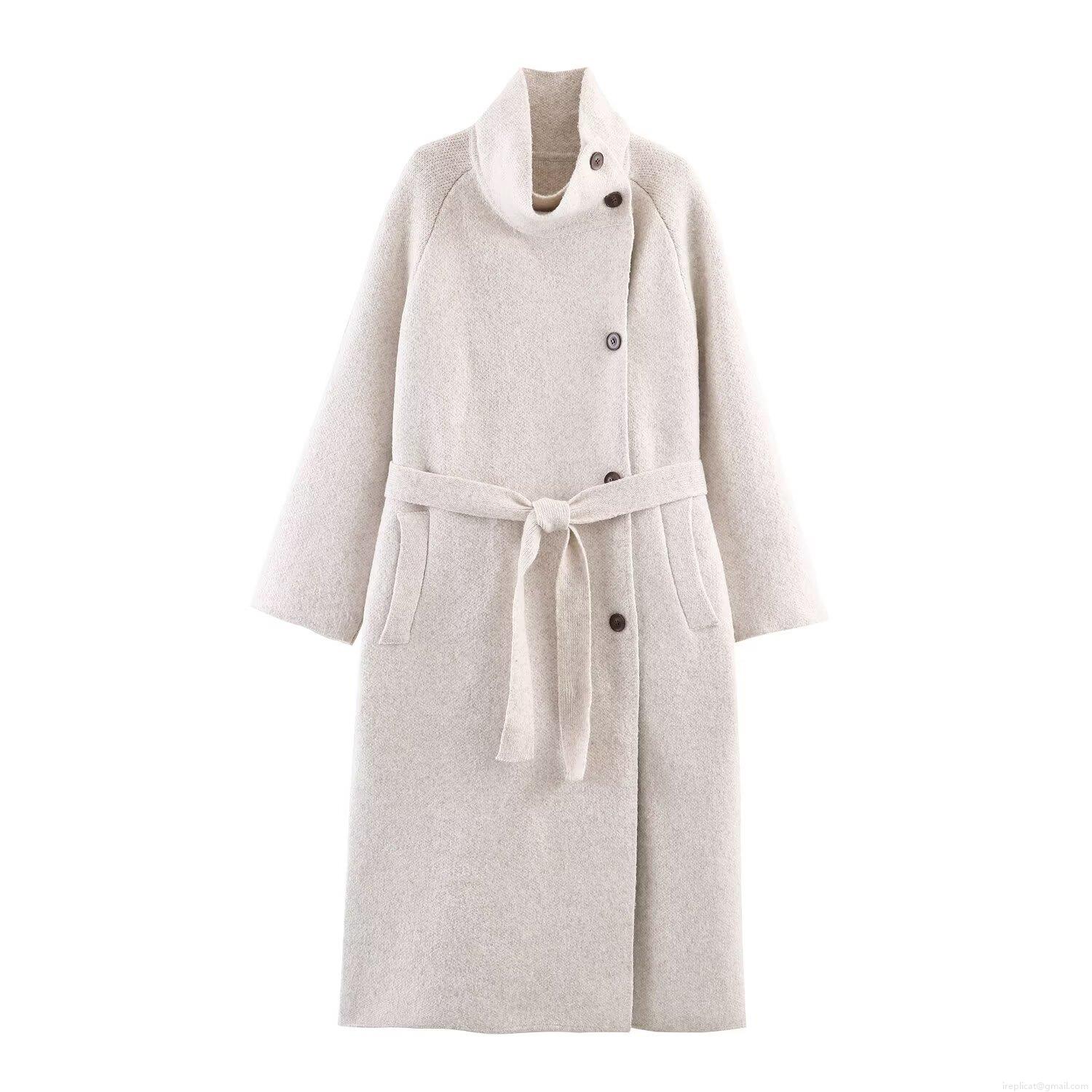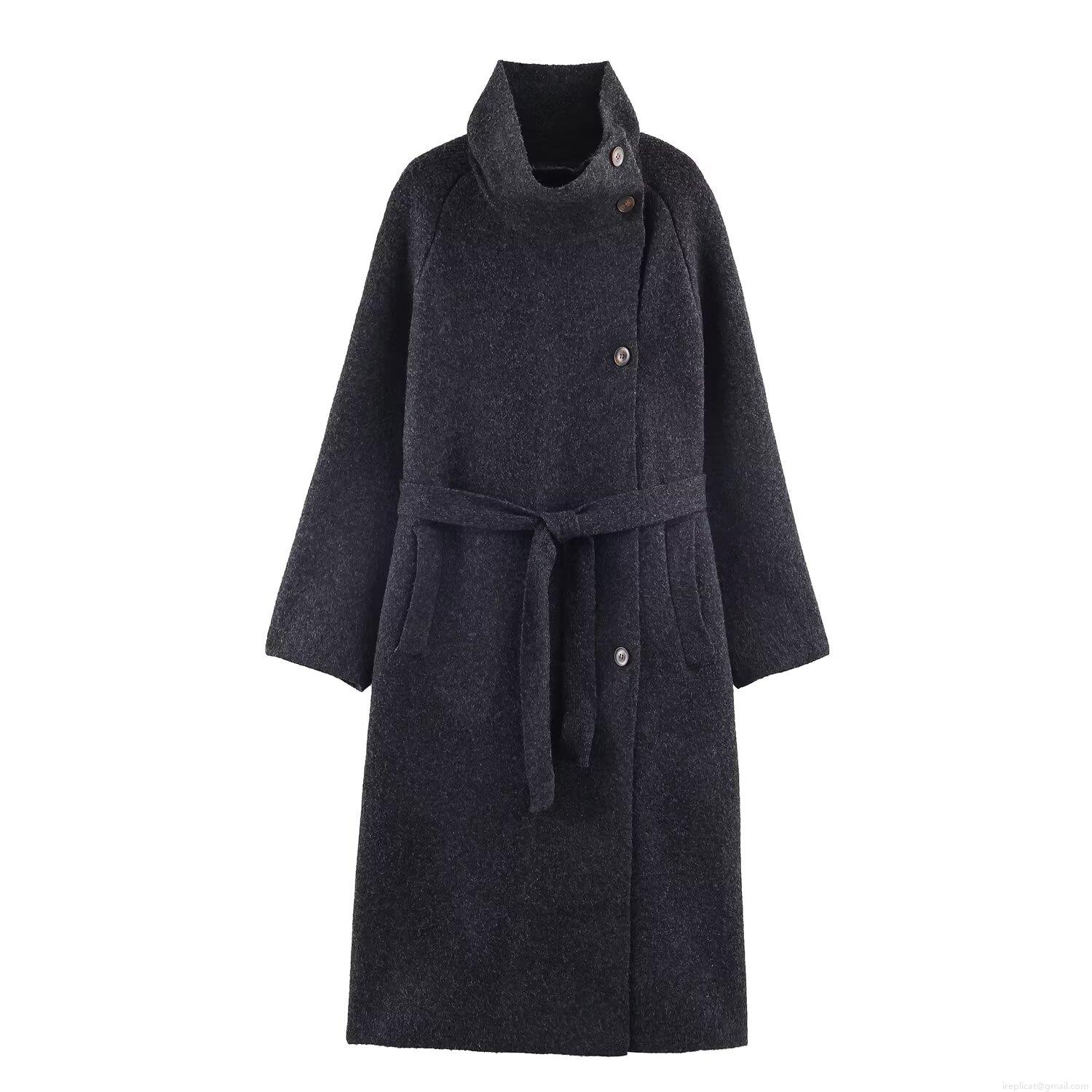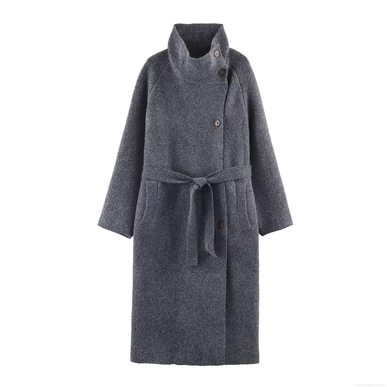 • Women's Long Woolen Coat Stand Collar Belted Waist Polyester Blend Autumn Winter Elegant Warm Overcoat Streetwear Outwear For Women