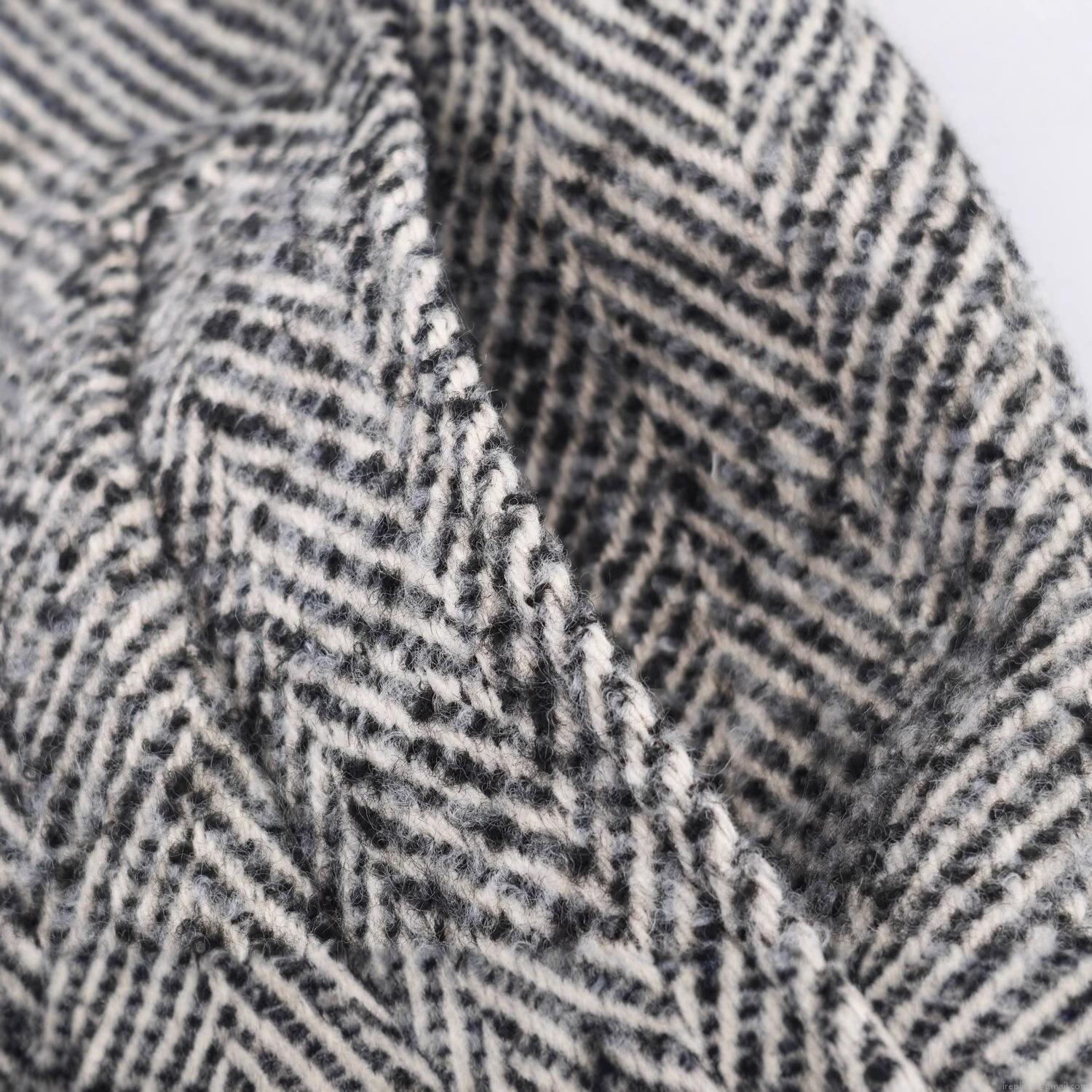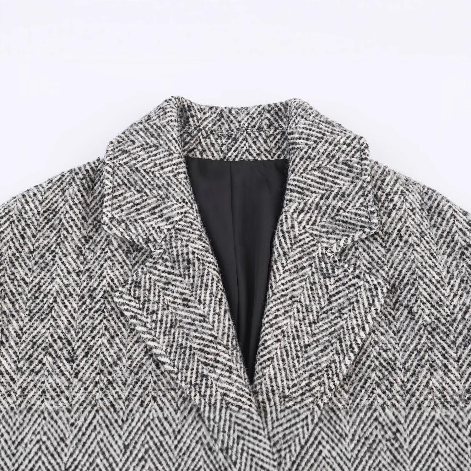 • Women's Long Woolen Overcoat Herringbone Pattern Single Breasted Trench Coat Warm Polyester Wool Blend Jacket Outerwear For Autumn Winter Ladies Street Style Elegant Fashion Longline Coat