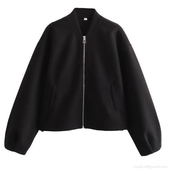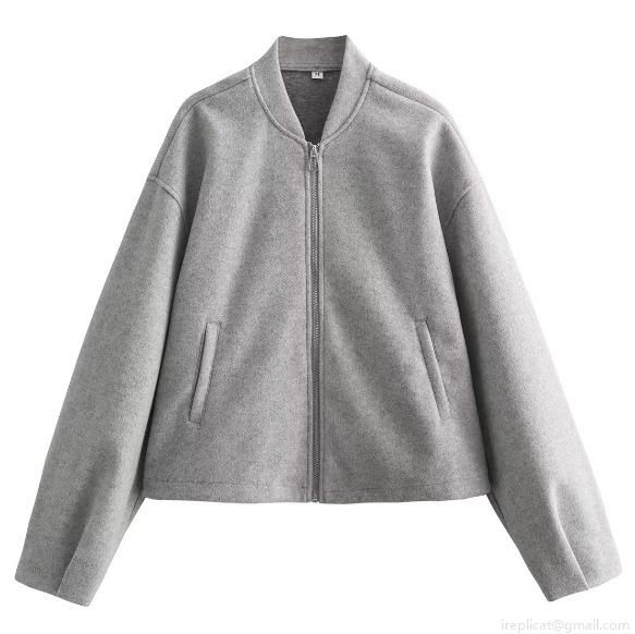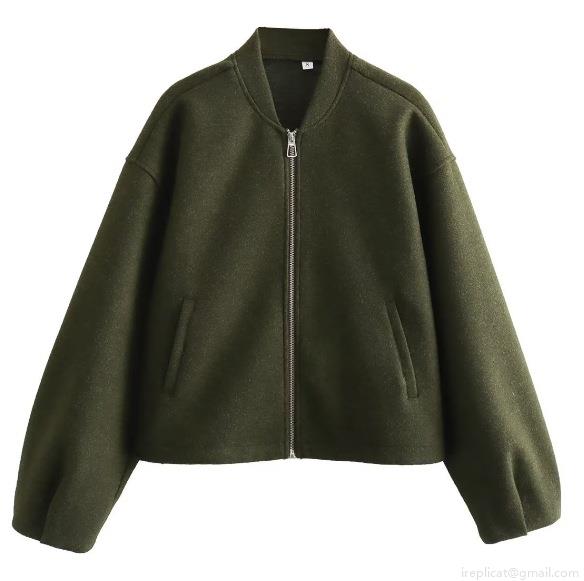 • Women's Loose Bomber Jacket 100% Polyester Stand Collar Zipper Short Coat Casual Long Sleeve Outerwear For Daily Wear