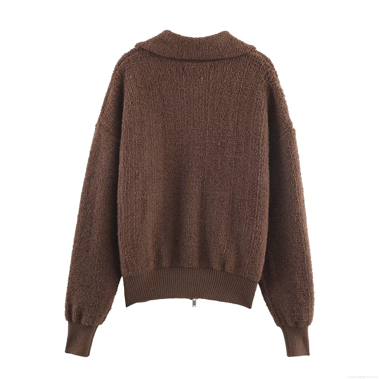 • Women's Loose Bouclé Fleece Bomber Jacket Zip Up Casual Sherpa Short Coat Outerwear Solid Color Warm Jacket for Autumn Winter