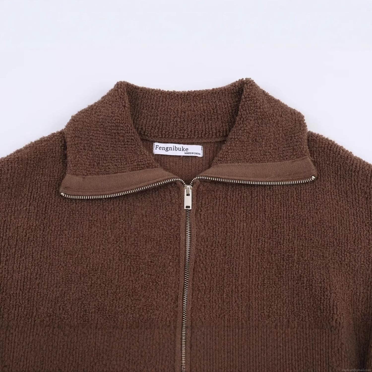 Solid Color, Pocket, Zipper, Fleece, Circle