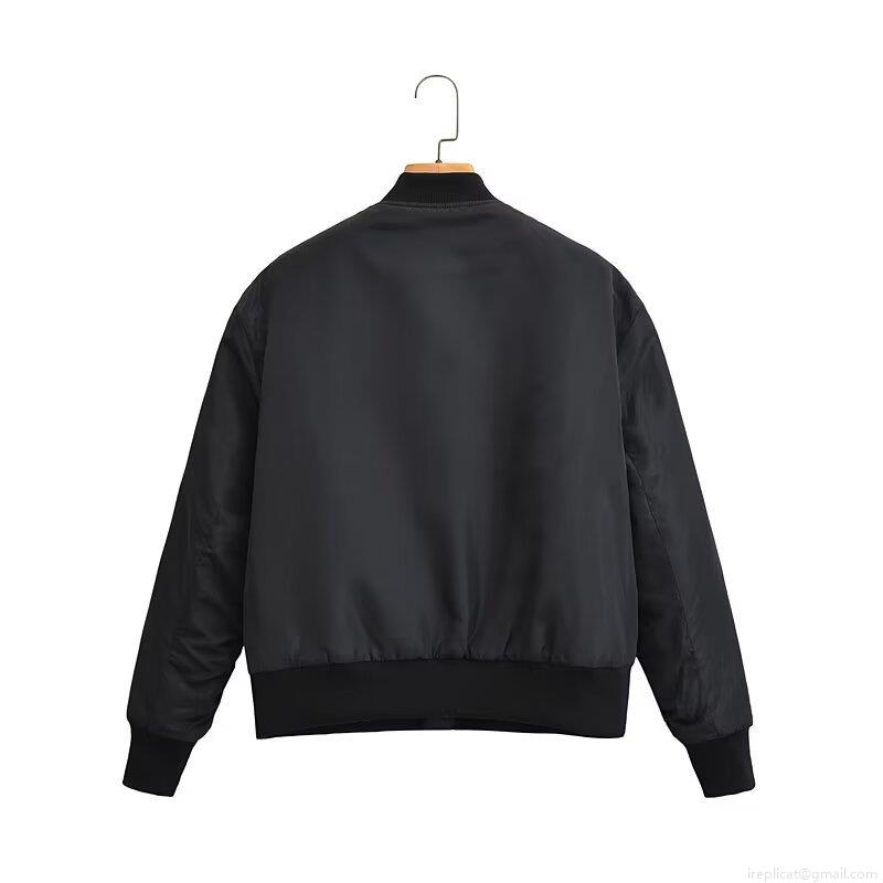 • Women's Loose Casual Bomber Jacket Polyester Quilted Padded Outerwear Stand Collar Zip Up Long Sleeve Winter Autumn Fashion Coat With Pockets