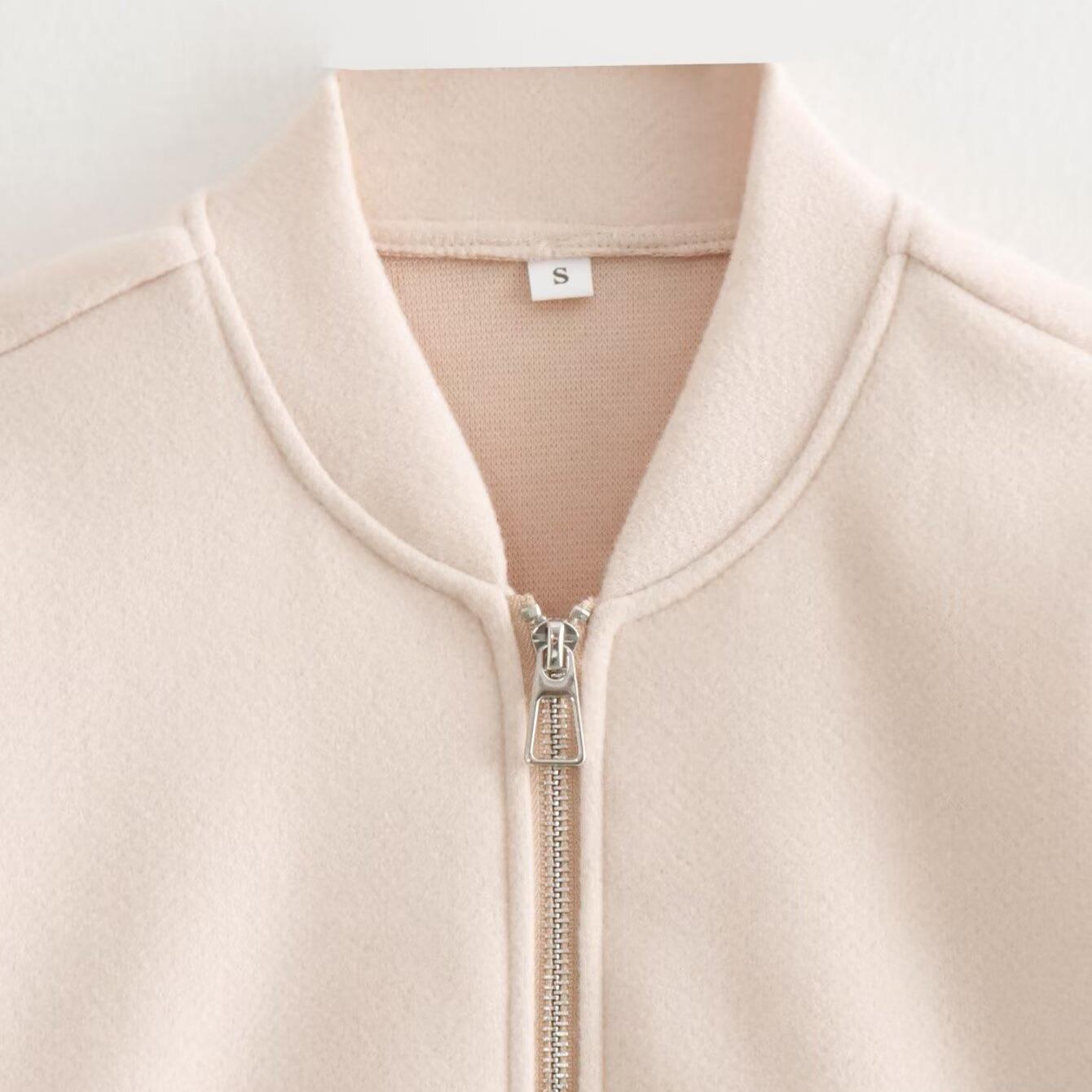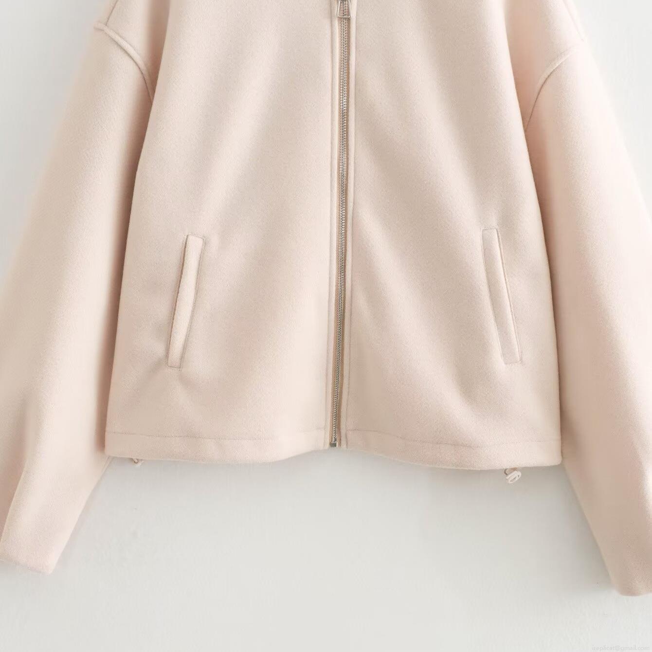 • Women's Loose Casual Bomber Jacket Polyester Wool-like Warm Flight Jacket With Metal Zipper Drawstring Hem Long Sleeve Baseball Coat For Daily Travel Minimalist Outerwear