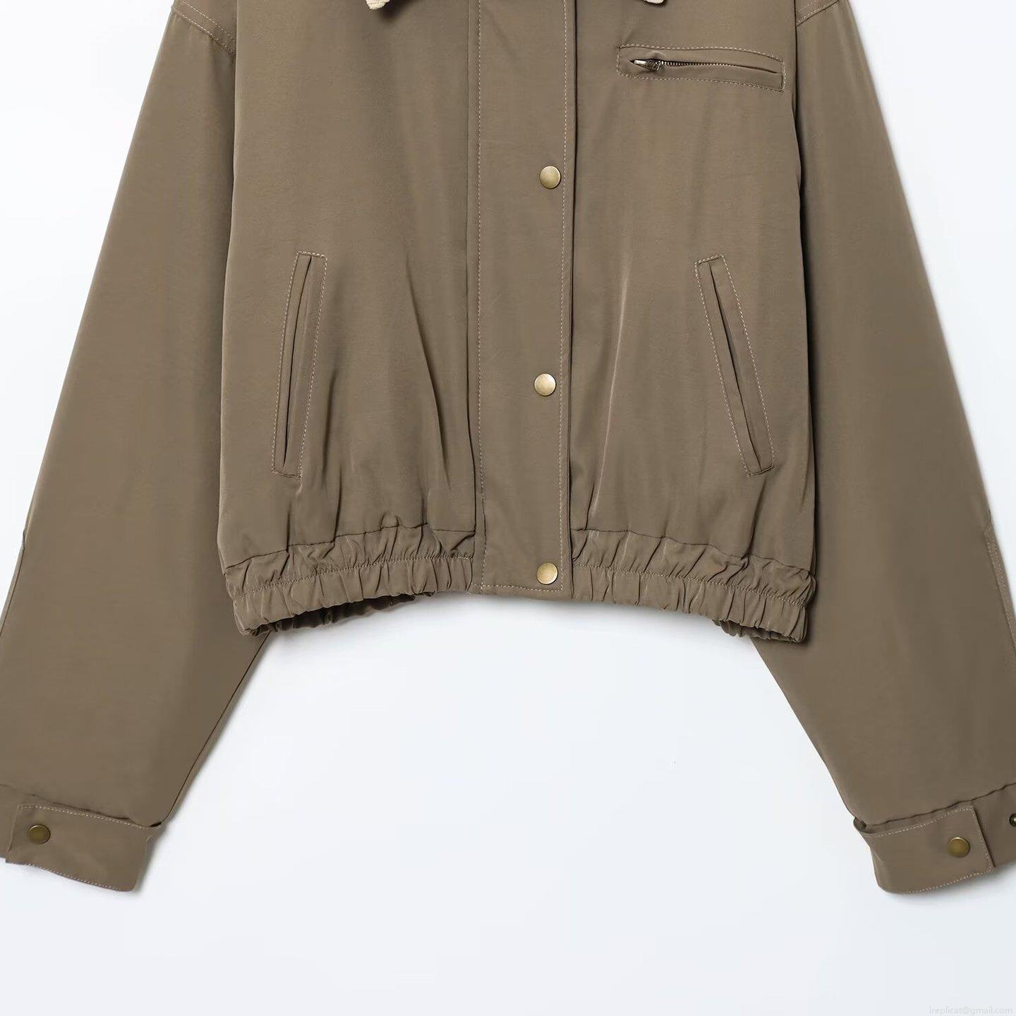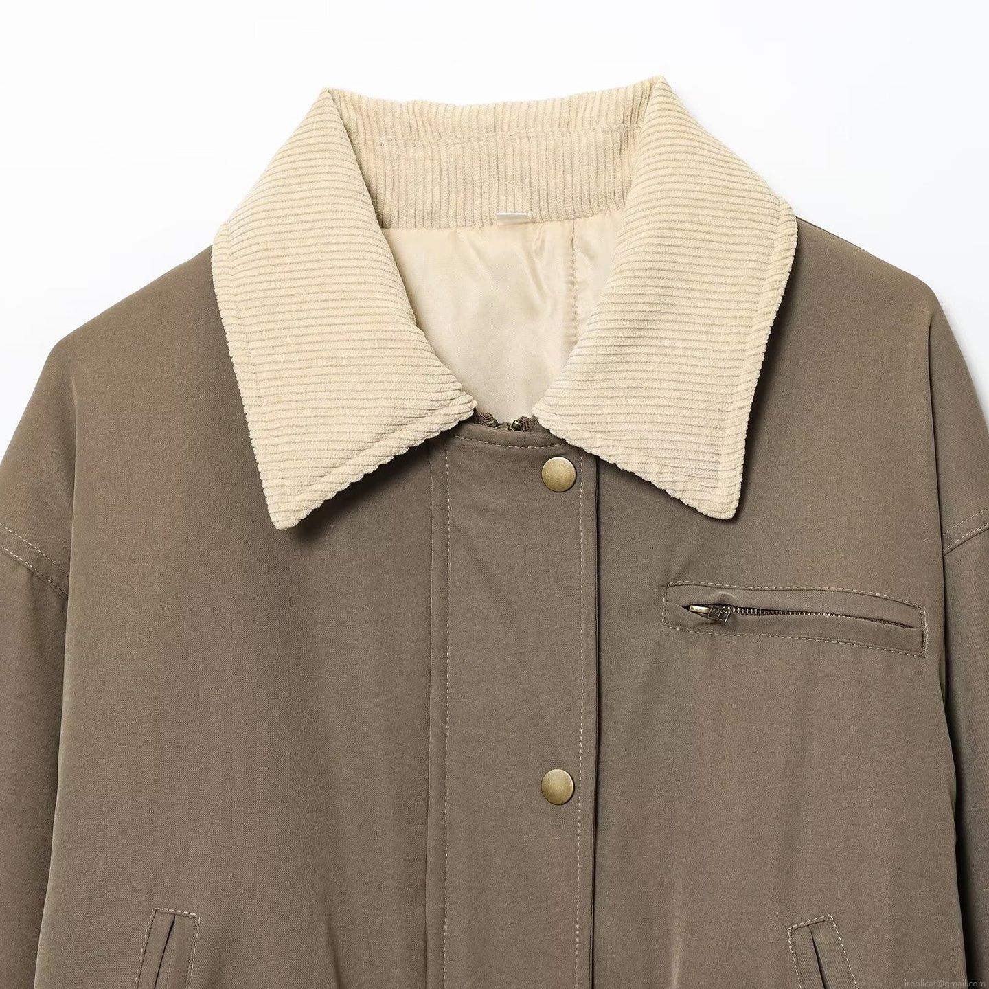 • Women's Loose Casual Jacket Retro Workwear Style Contrast Corduroy Collar Zipper Button Closure Long Sleeve Polyester Spandex Outerwear Fashion Streetwear Coat For Autumn