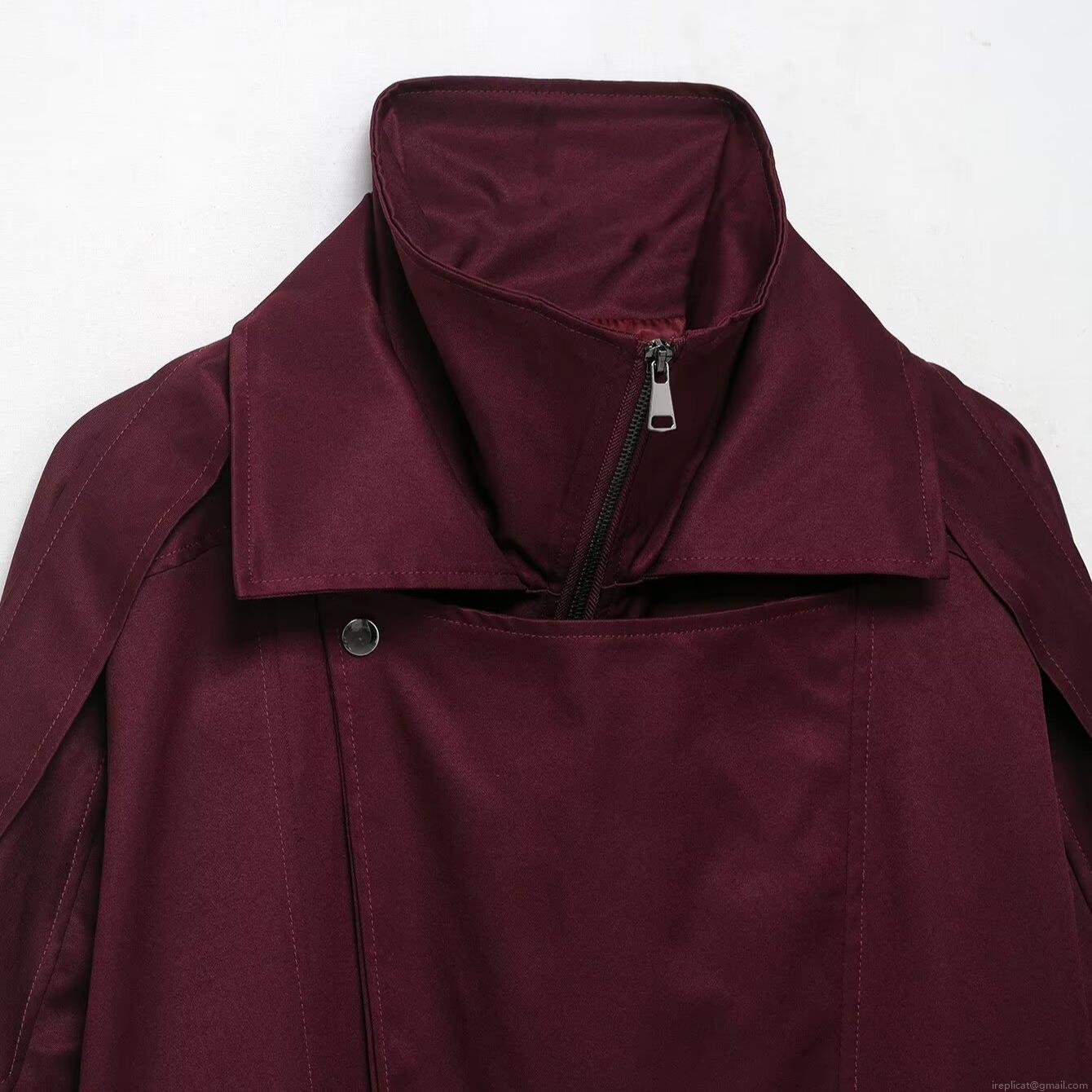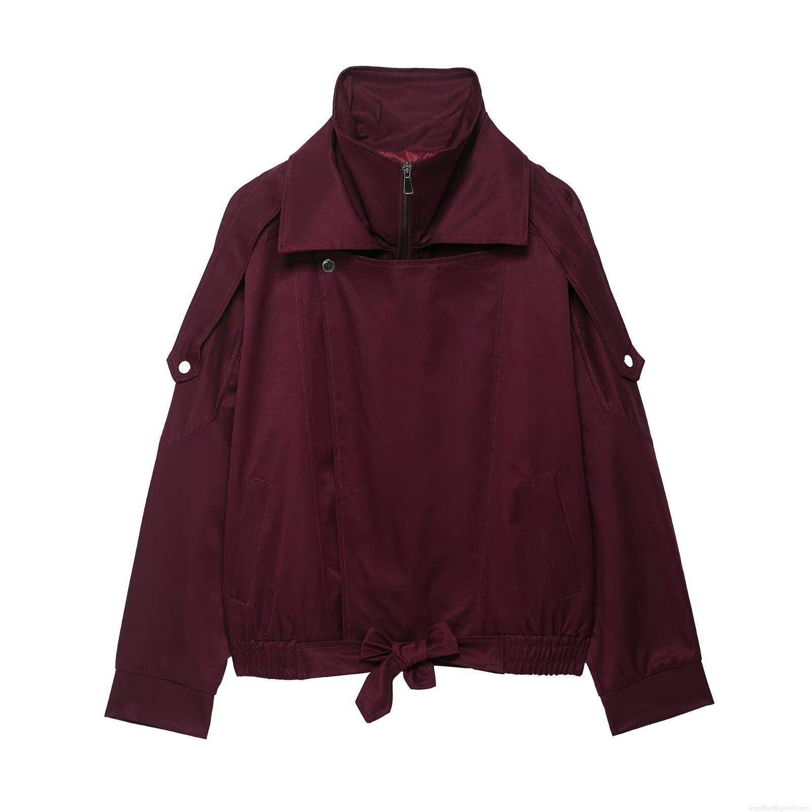 • Women's Loose Casual Windbreaker Jacket 100% Polyester Stand Collar Zip Up Coat With Bow Tie Hem For Autumn Winter Fashion