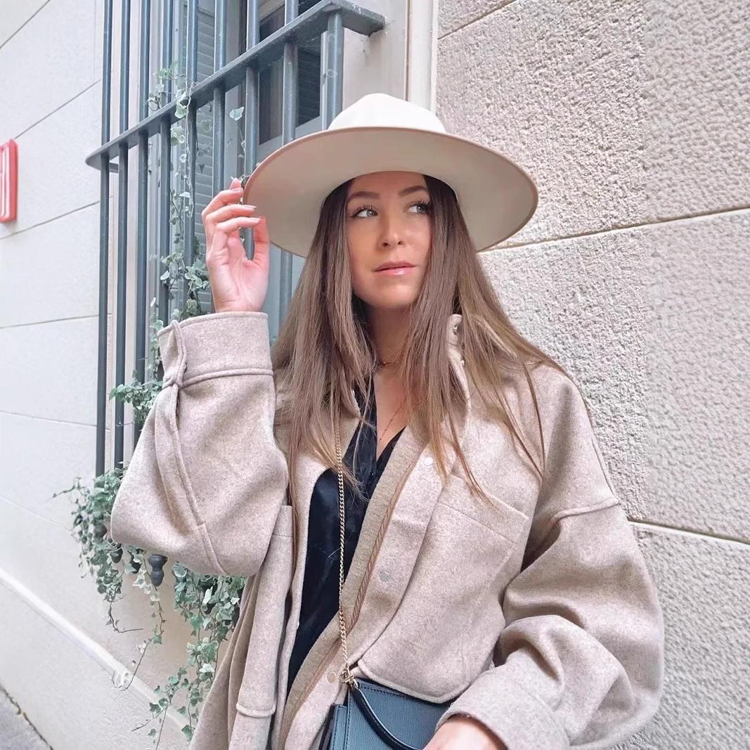 • Women's Loose Casual Woolen Shacket Long Sleeve Shirt Jacket With Pockets Solid Color Lapel Outerwear Coat For Autumn Winter Fashion Streetwear